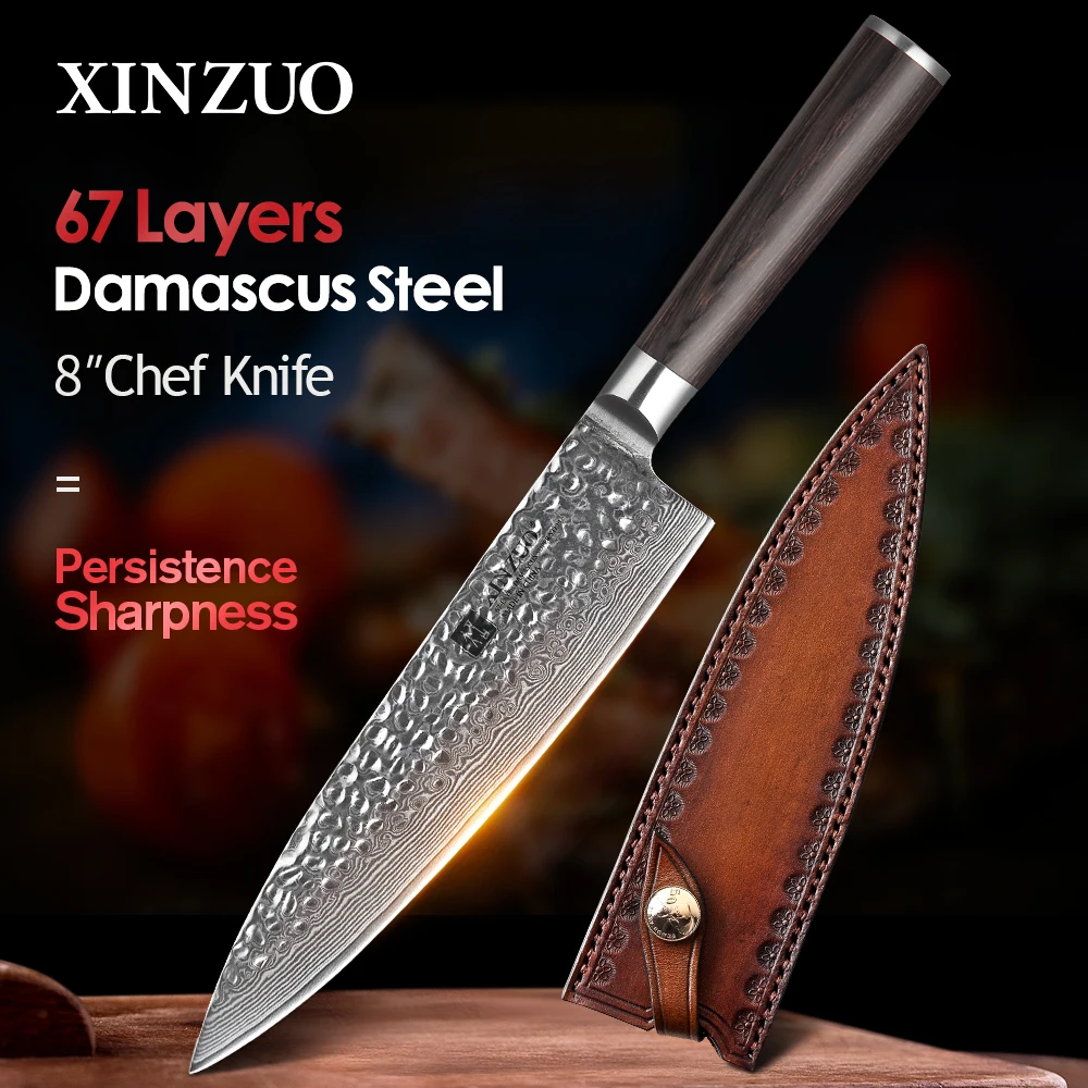 XINZUO 8 дюймов нож шеф-повара Дамасская сталь кухонные аксессуары для поваров передовой нож Gyotou Pakkawood ручка подарочные ножи