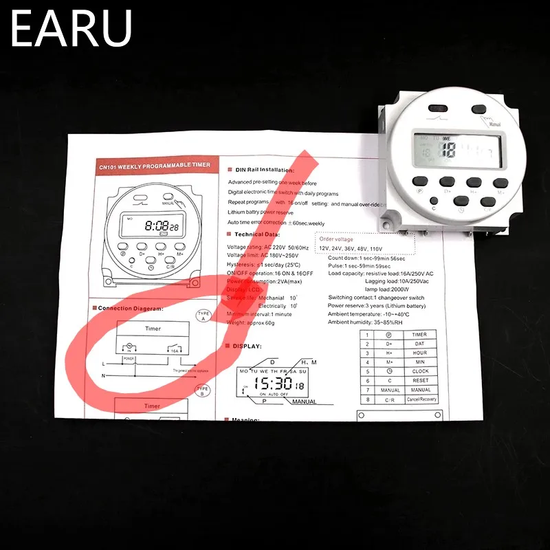 Программируемый таймер CN101A, 12 В, 24 В, 110 В, 120 В, 220 В, 230 В, 240 в, с цифровым ЖК-дисплеем