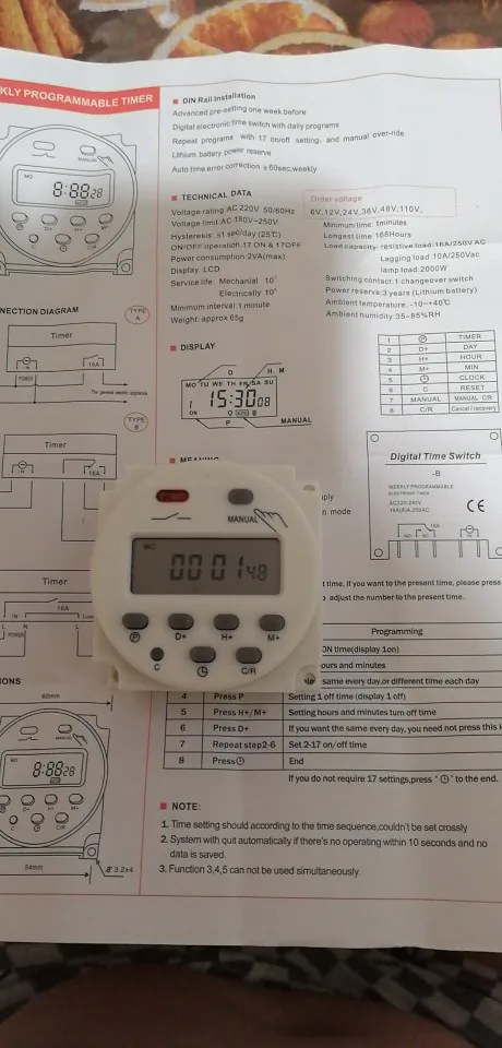 после нажатия на кнопку сброс таймер заработал. можно настроить до 17 программ