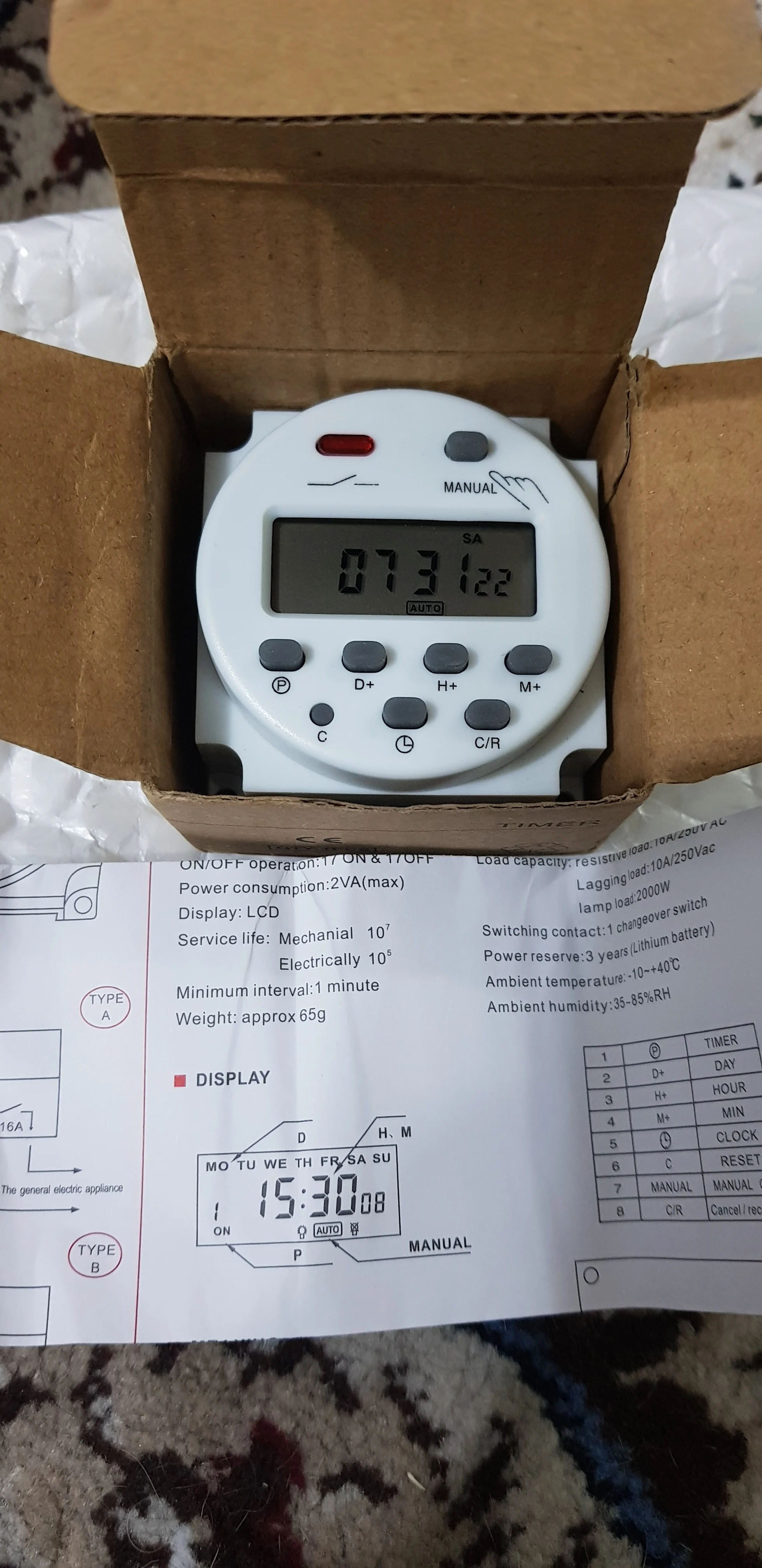 Таймер пришел с выключенным дисплеем, думал не работает, даже открыл спор. Но случайно нажал сброс и таймер включился. Работает уже две неделе и выполняет свою функцию на 100%.