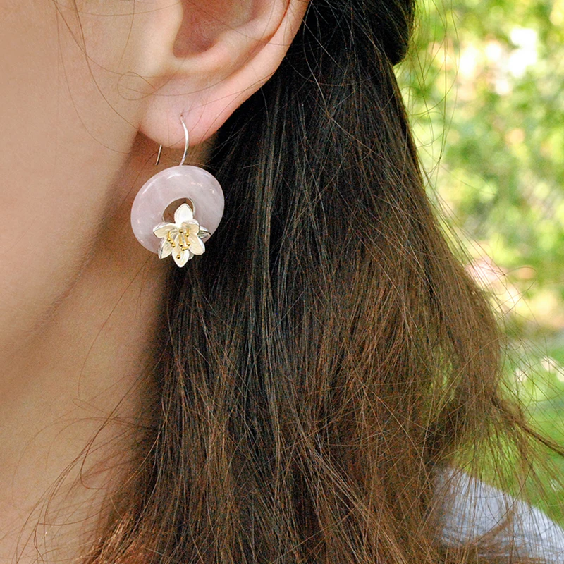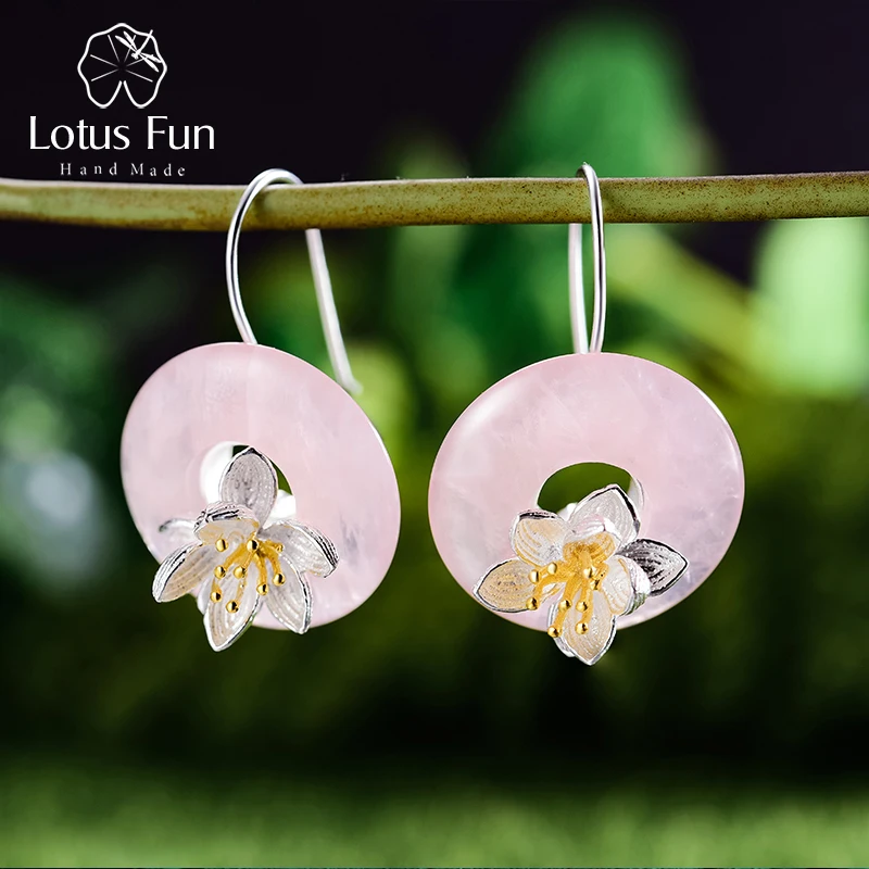 Lotus Fun Реальные Стерлингового Серебра 925 Природный Камень Творческий Изысканные Ювелирные Изделия Ручной Работы Лотоса Шепчет Серьги для Женщин Brincos