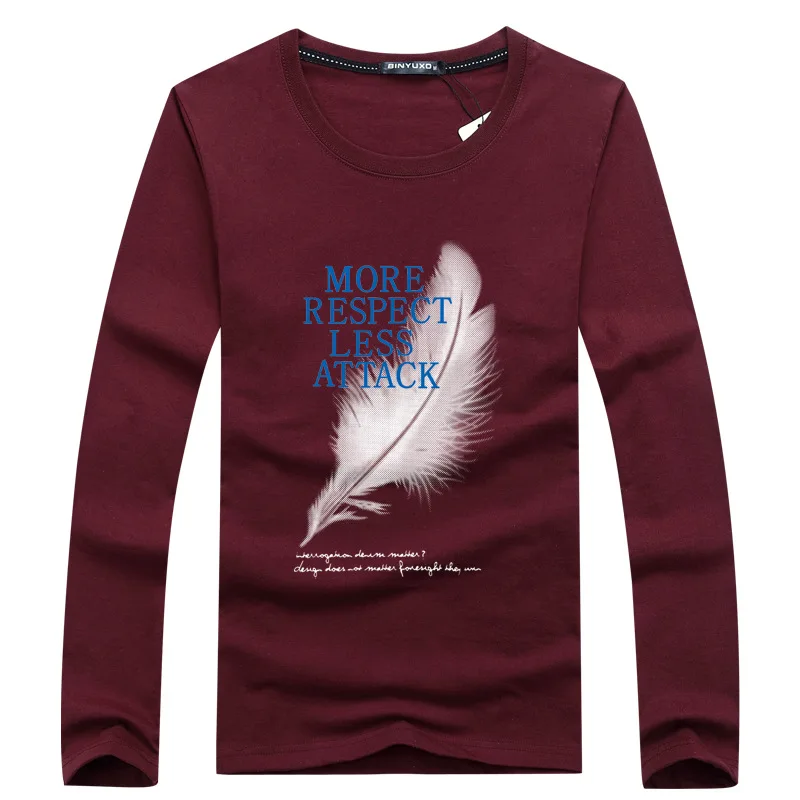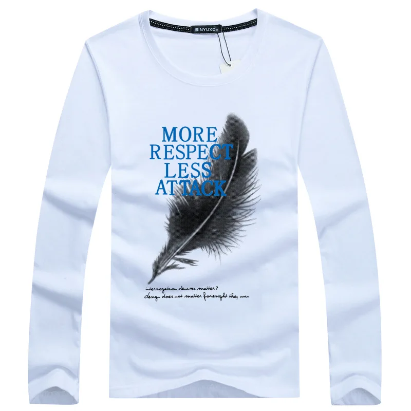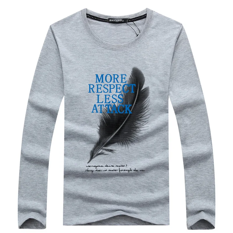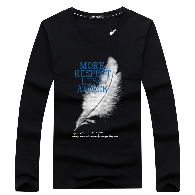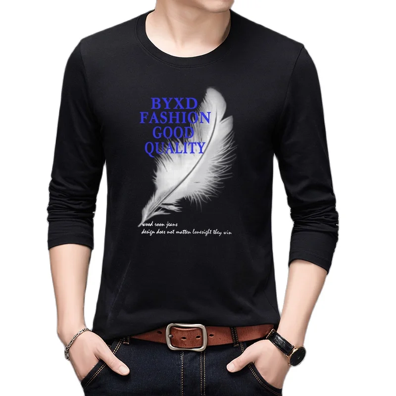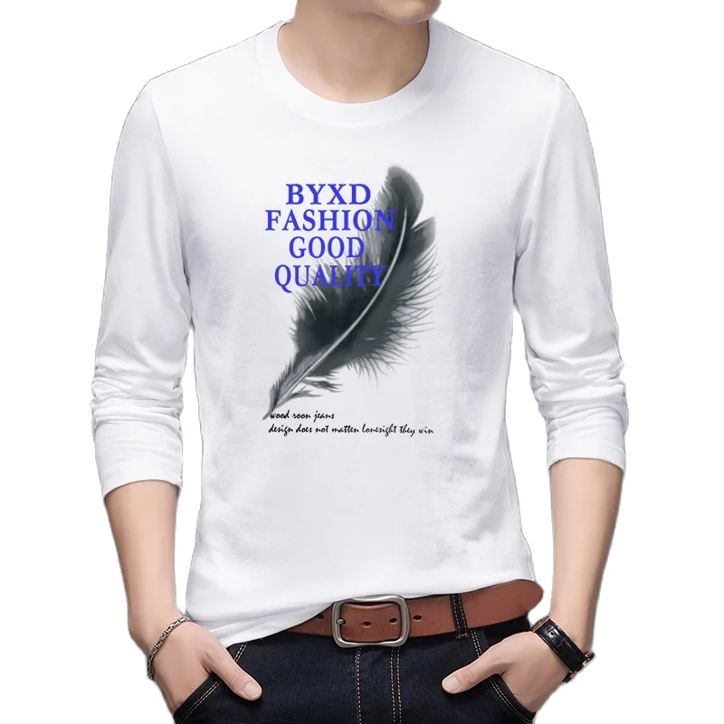 Футболка BINYUXD мужская с круглым вырезом, хлопковая тенниска с принтом перьев, повседневная брендовая майка с длинным рукавом, весна
