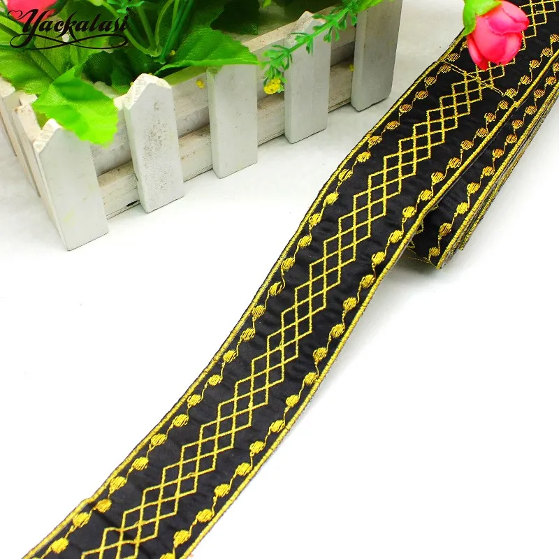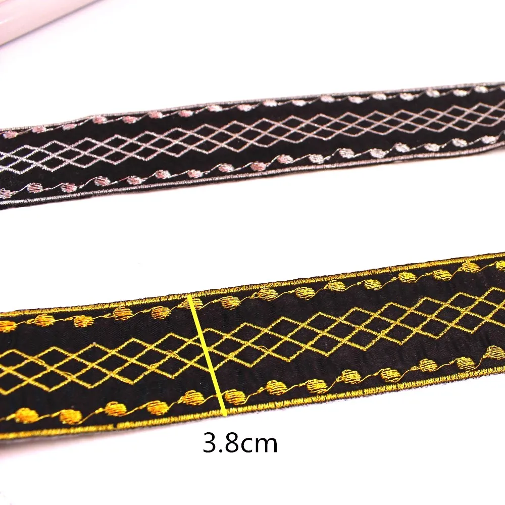 Кружевная лента с золотой вышивкой, 6 ярдов, черная, золотая, атласная, плетеная, металлическая, 3,8 см