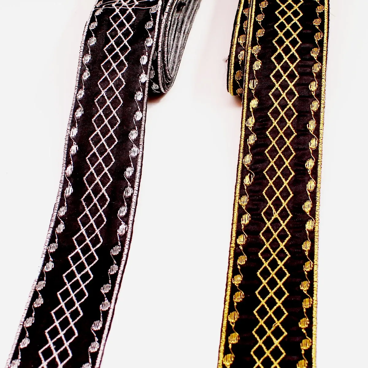 Номер моделиGold Embroidered Band Black Satin Braid Metallic Venise Lace Iron On 3