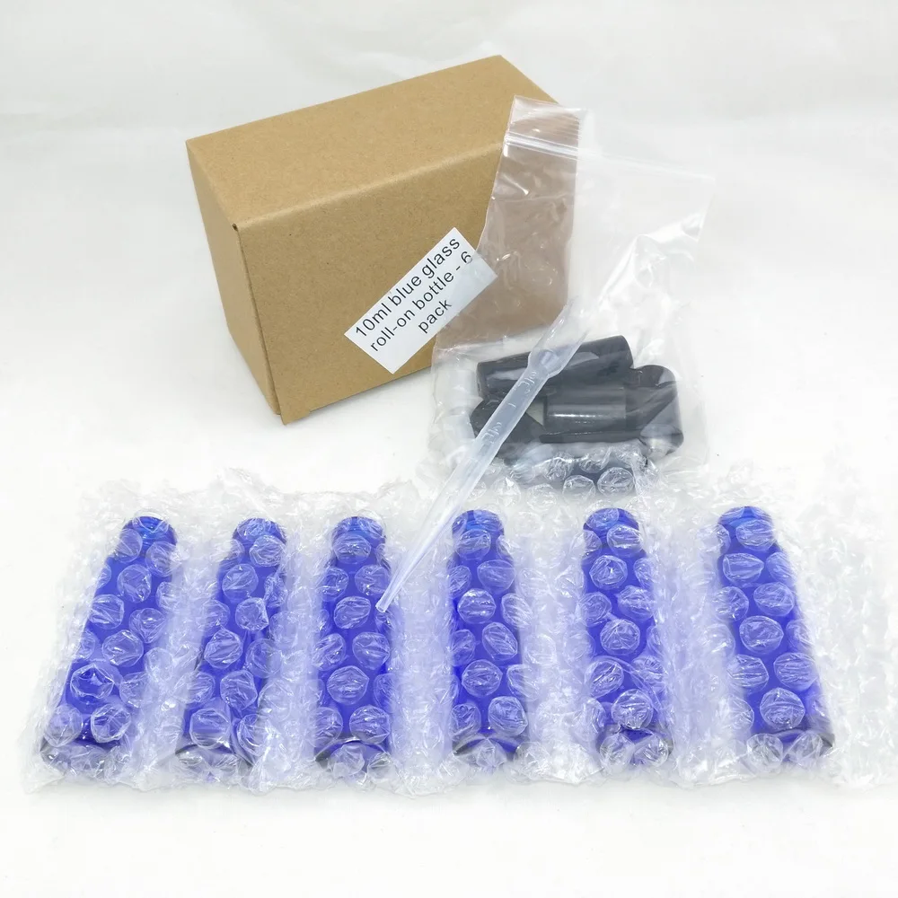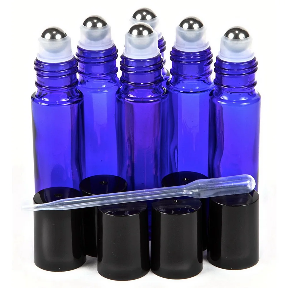 Особенности продукта:6 штук кобальтовые Голубые Стеклянные роликовые бутылки с гладкими роликами и черными колпачками, с вариантами роликов из нержавеющей сталиИлиСтеклянные ролики.