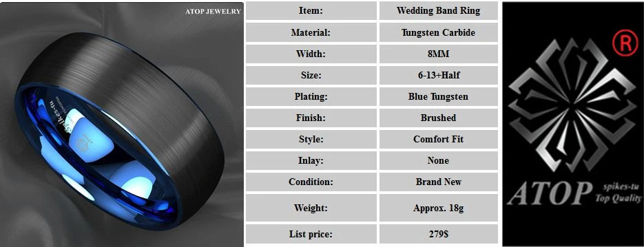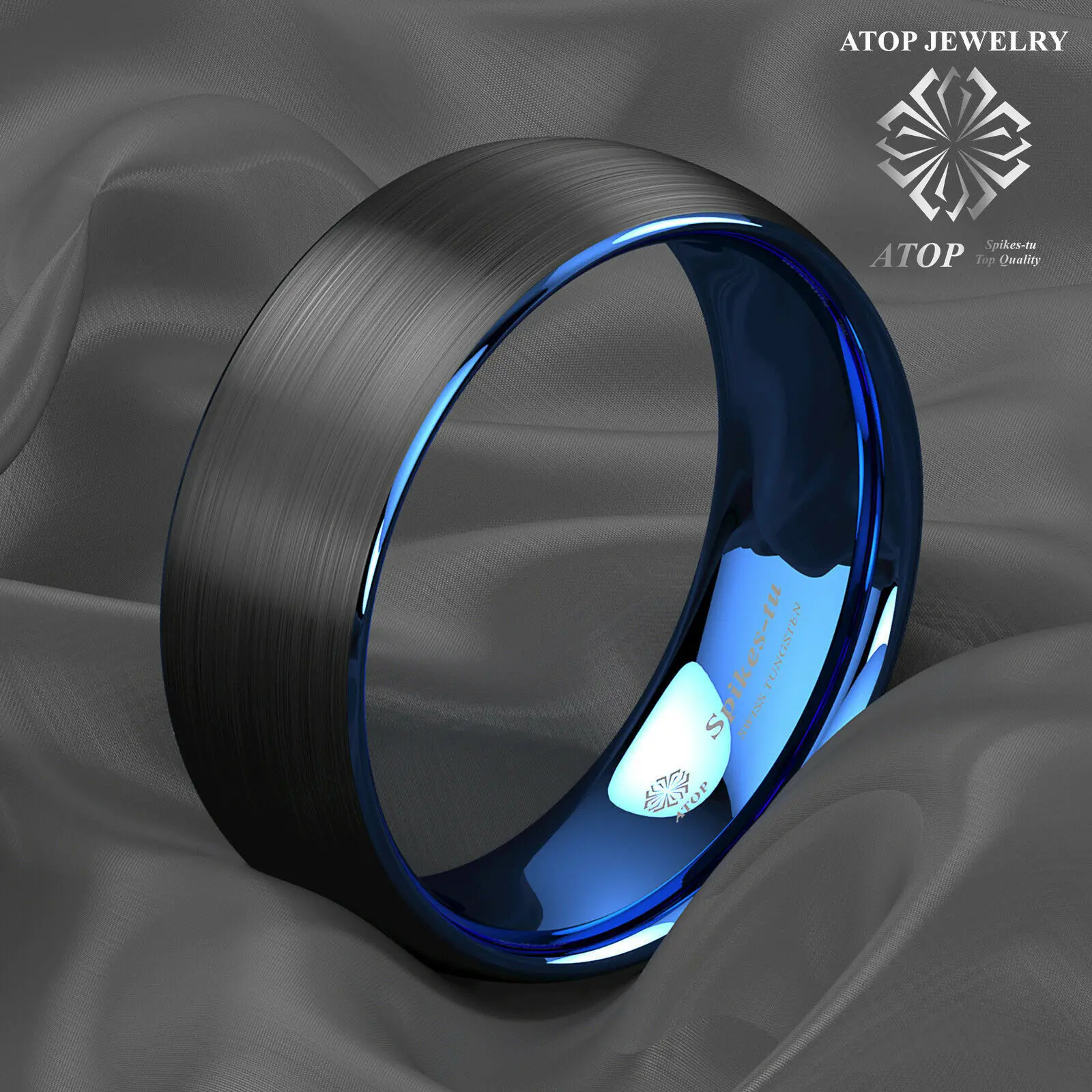 Мужское вольфрамовое кольцо ATOP, 8 мм, с начесом, синего и черного цвета, обручальное кольцо, свадебная бижутерия, бесплатная доставка