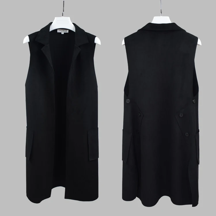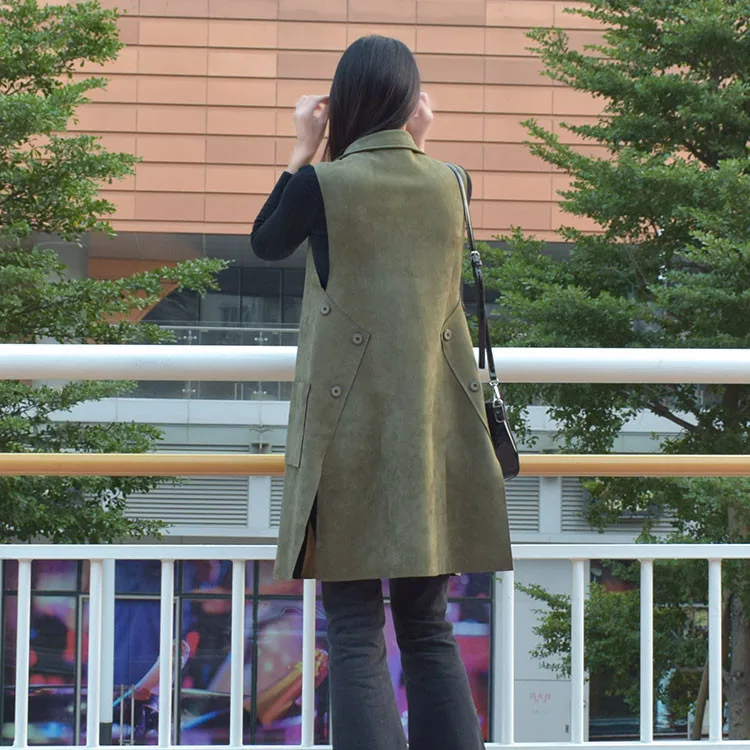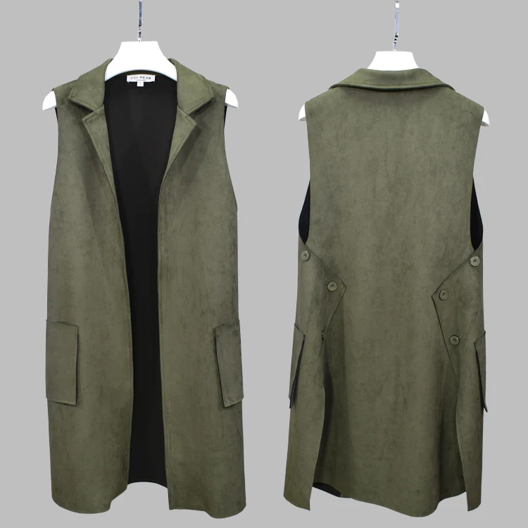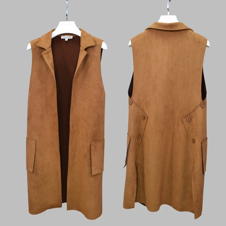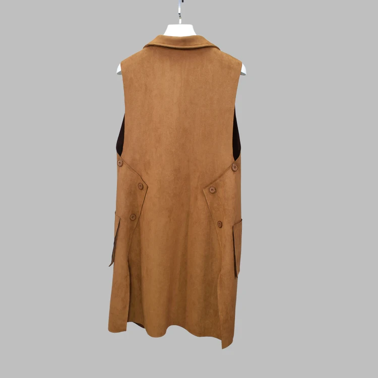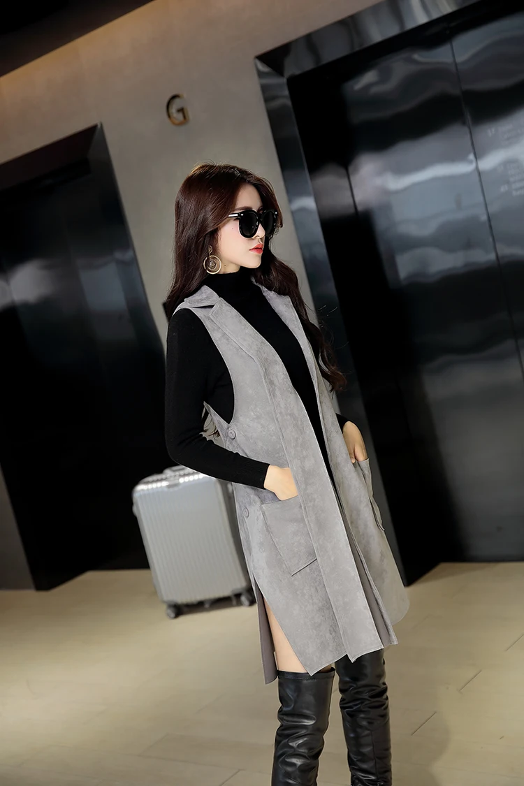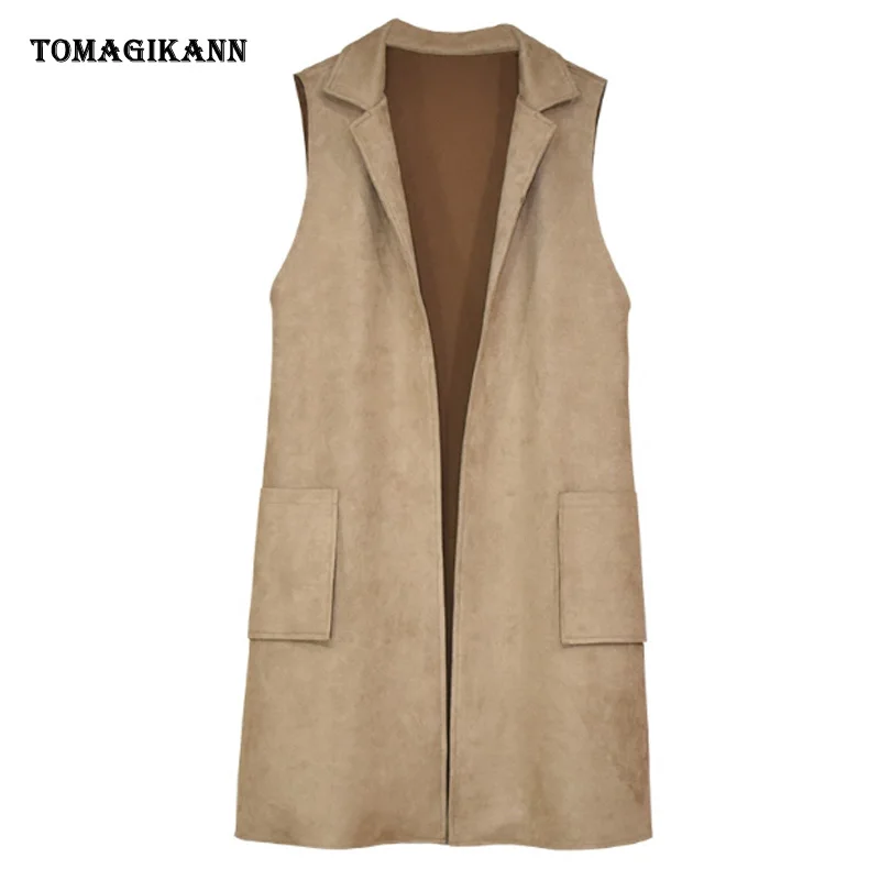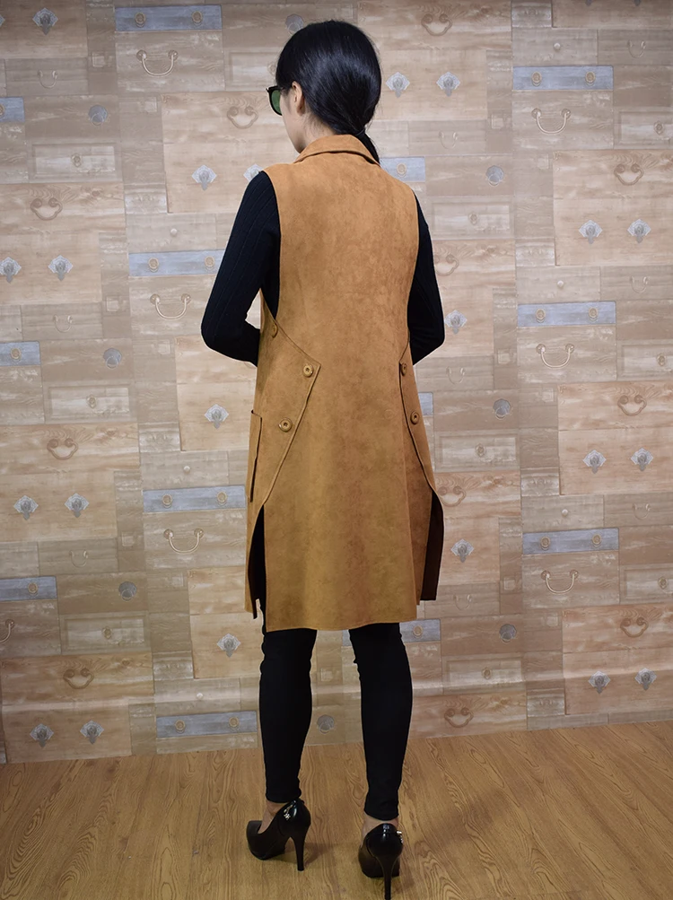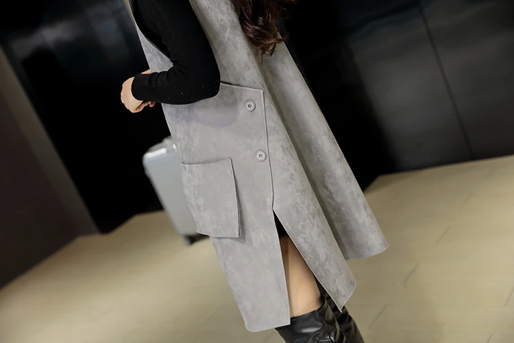 Жилет женский замшевый на пуговицах с Боковым Разрезом, длинный жилет с карманами, размера плюс кардиган с открытыми стежками, верхняя одежда
