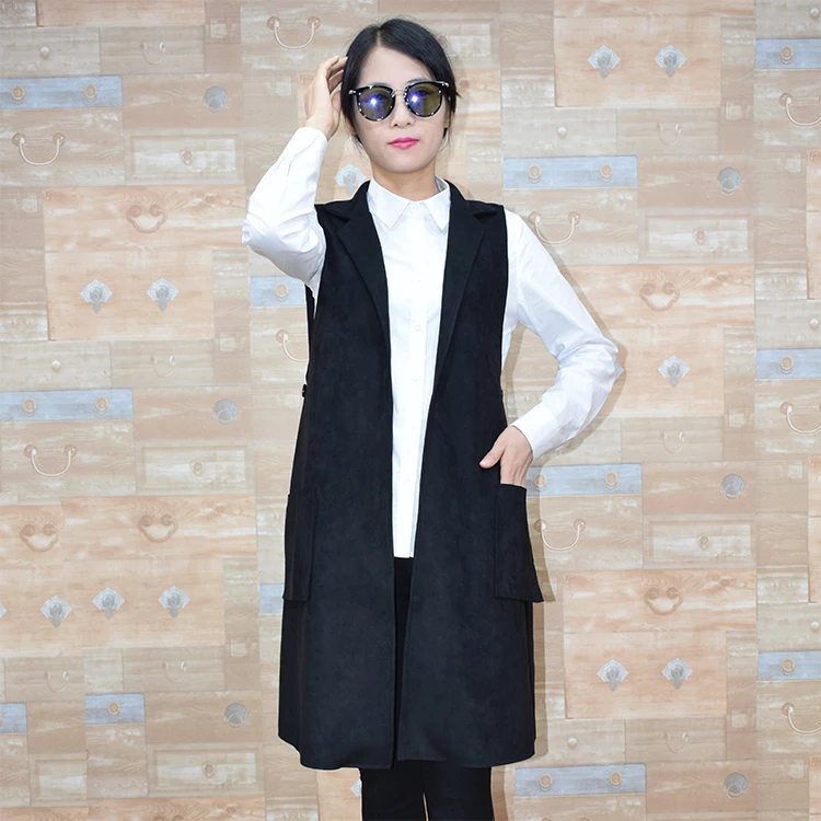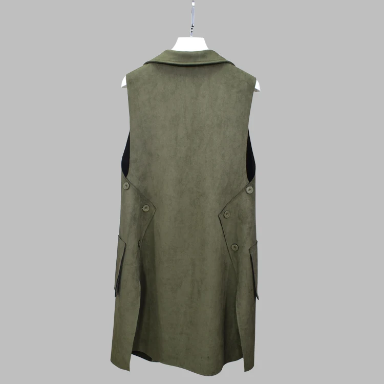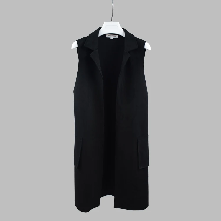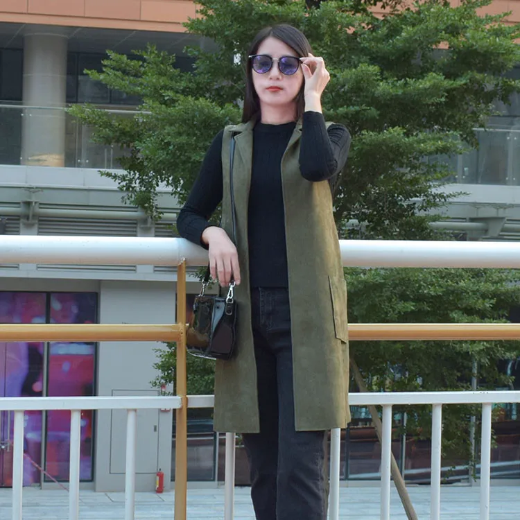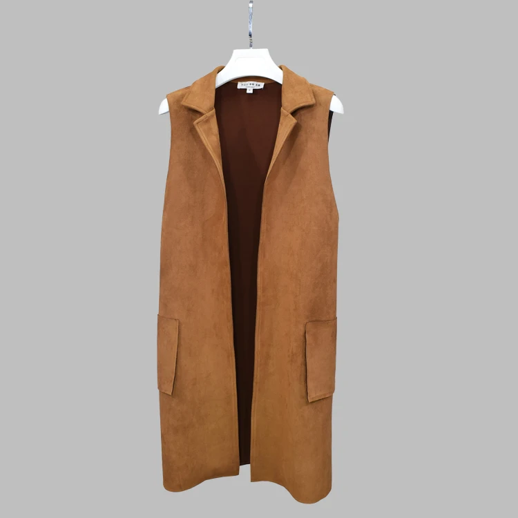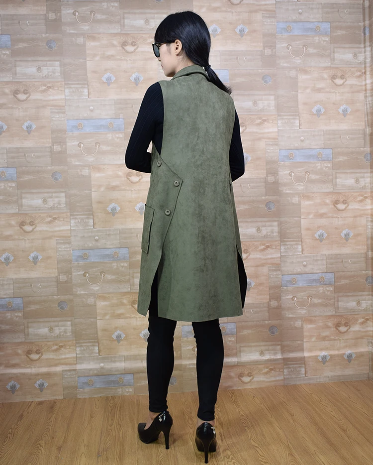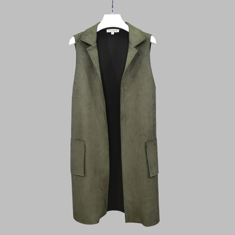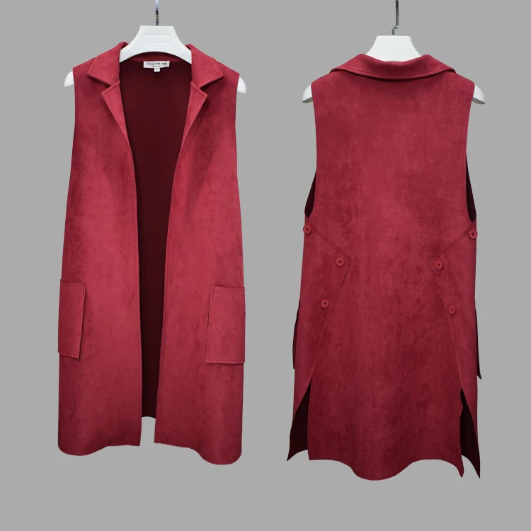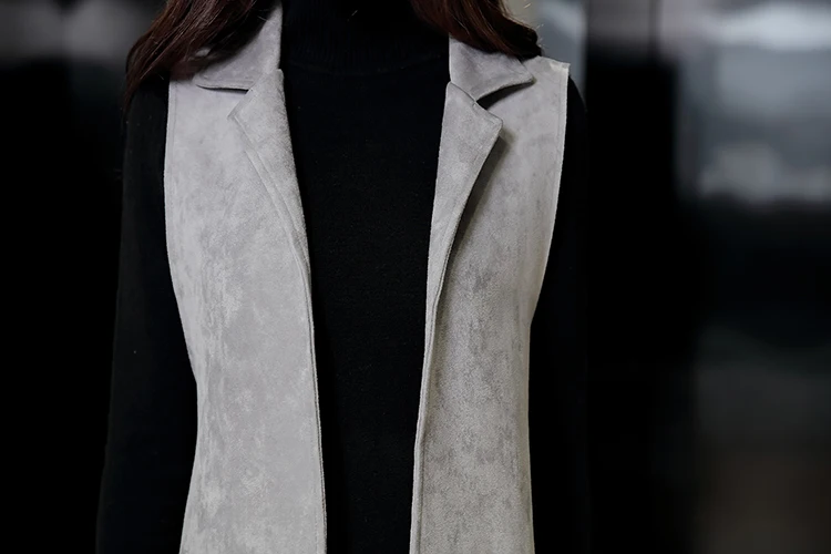 Жилет женский замшевый на пуговицах с Боковым Разрезом, длинный жилет с карманами, размера плюс кардиган с открытыми стежками, верхняя одежда