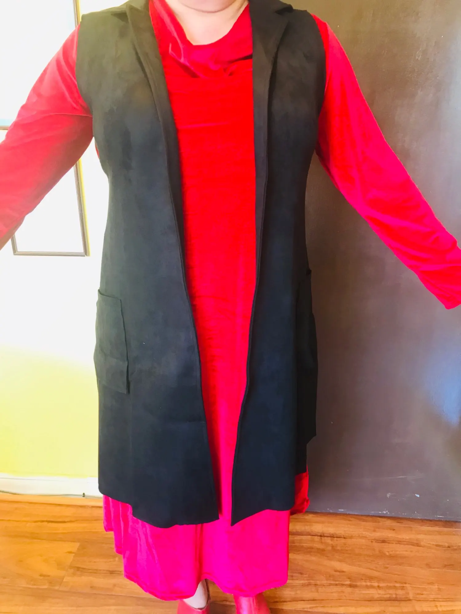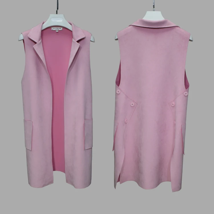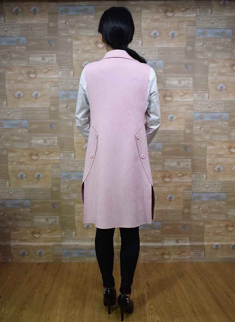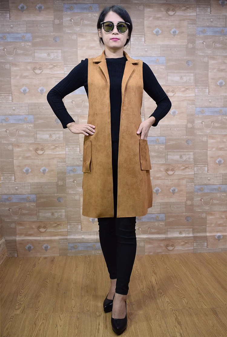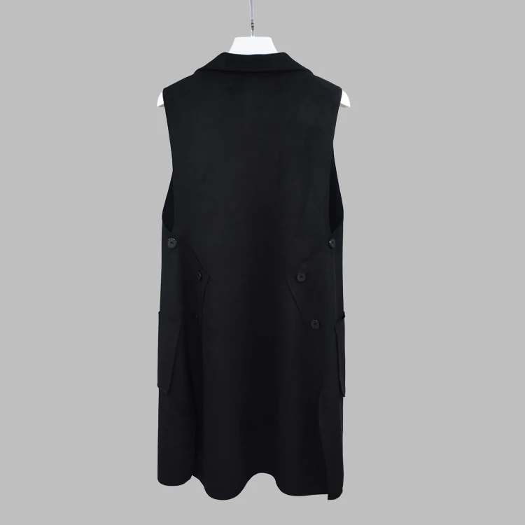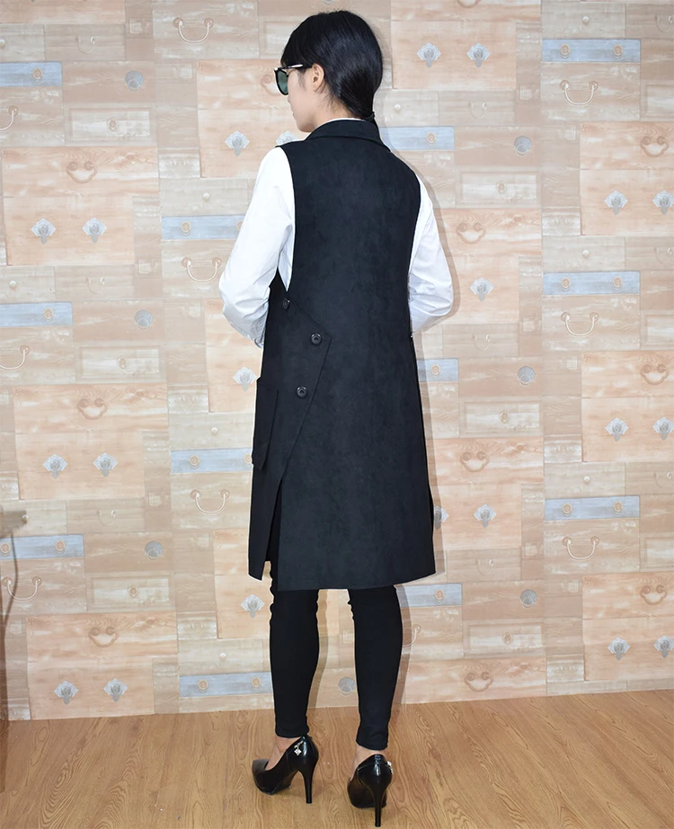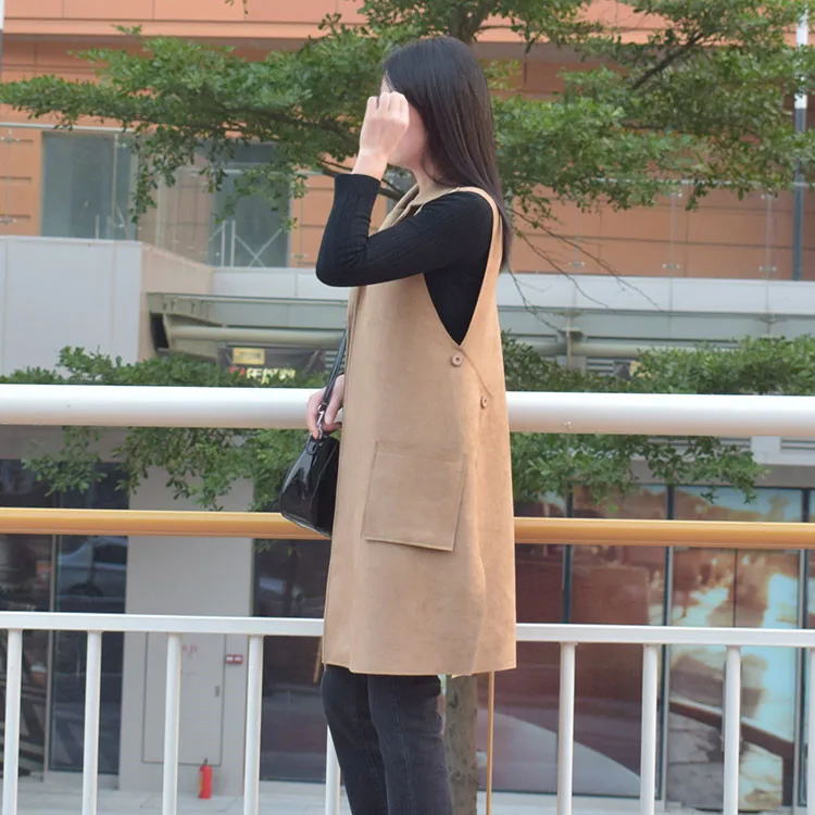 Жилет женский замшевый на пуговицах с Боковым Разрезом, длинный жилет с карманами, размера плюс кардиган с открытыми стежками, верхняя одежда