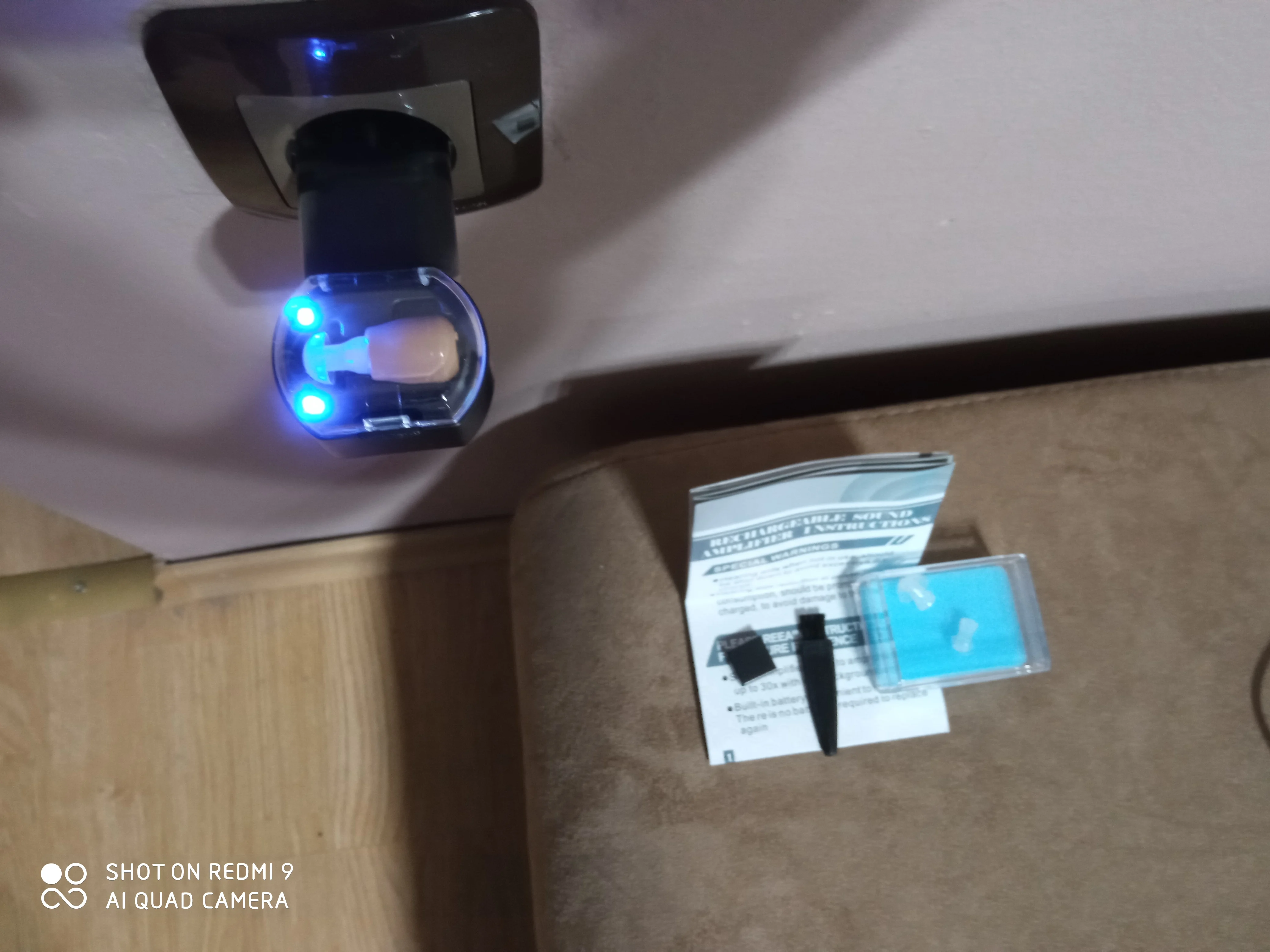 Товар пришел довольно быстро. Акку мулятор зарядил, прибор работает. В ухо сразу не подошло, пришлось вкладыши изобретать свои. Прибор рабочий. Магазин рекомендую.