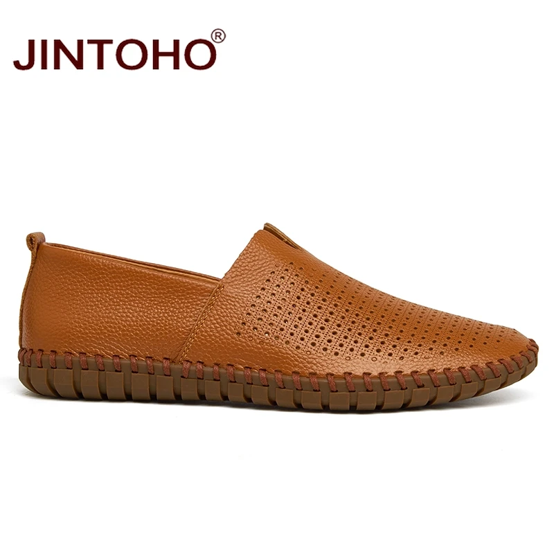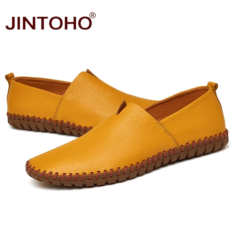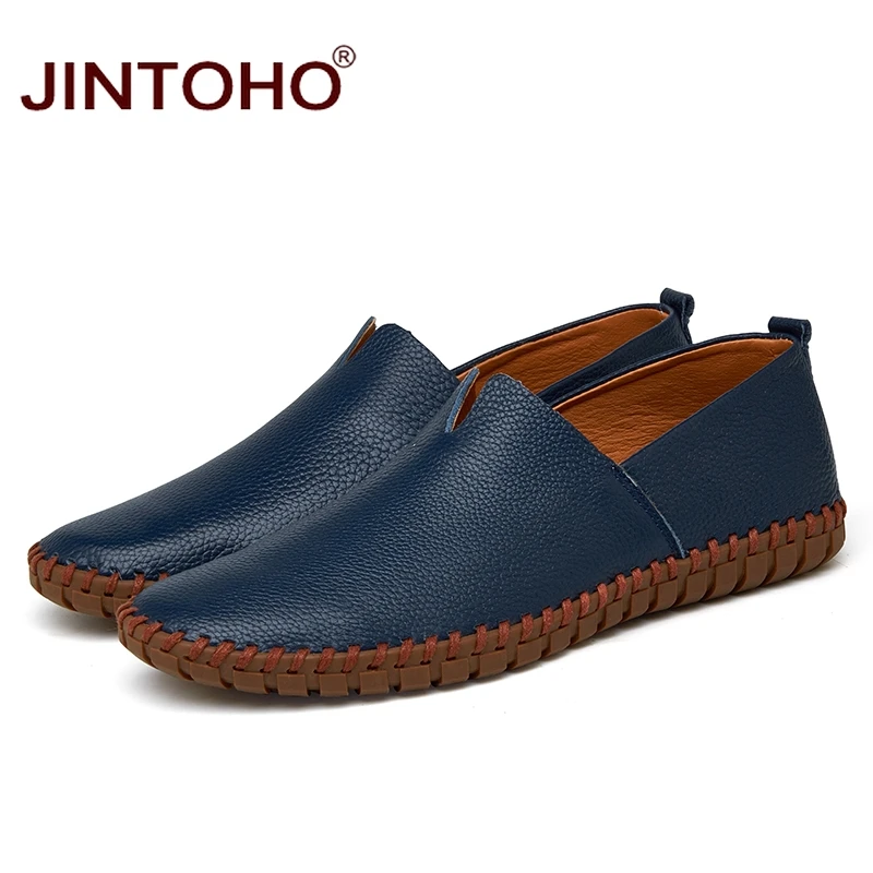 Туфли JINTOHO мужские из натуральной кожи, модные Лоферы без застежки, итальянская кожаная Брендовая обувь, большие размеры