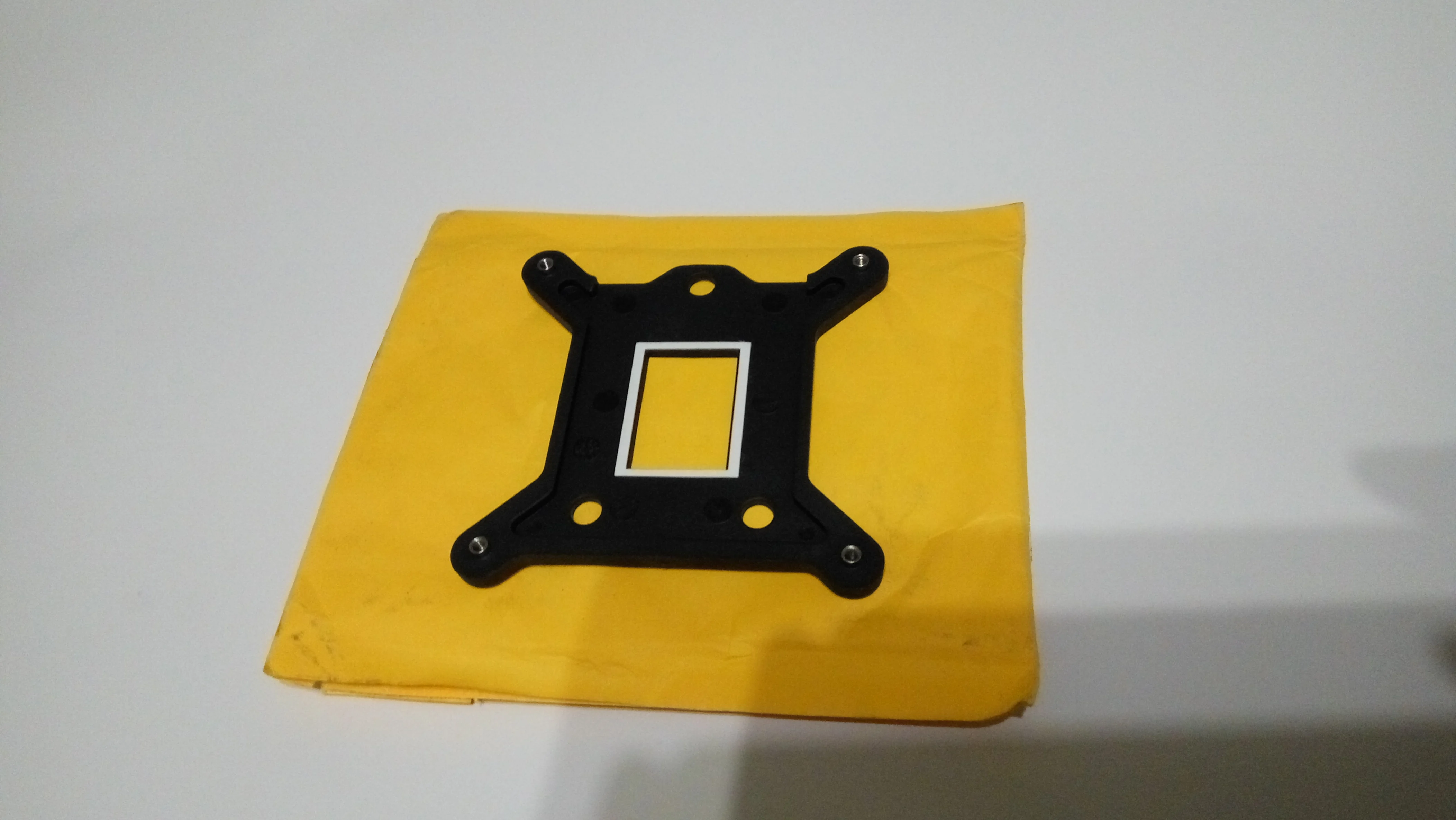 Быстрая доставка. Высота резьбы чуть меньше, чем на аналогичной cooler master. Но, как оказалось, стандарта на высоту нет, всякий производитель свою делает. Хорошо, что здесь она маленькая, так универсальнее, если что, можно просто недотягивать болты до упора. А вот в обратном случае, мог бы не обеспечиться прижим. Жаль, что не метал. Но за эту цену - рекомендую.