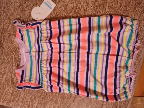 Замовляла для донечки 24 м, ми зараз 80 см і сідає просто ідеально, якість бомбезна. Тканина натуральна, гарно прошита, нитки ніде не випирають. На фото комбінезон вже після прання і чудово видно що він не втратив свій колір чи форму. Доставка була дуже швидка(менше 2 тижнів). Однозначно буду замовляти в продавця ще якщо буде наш розмір