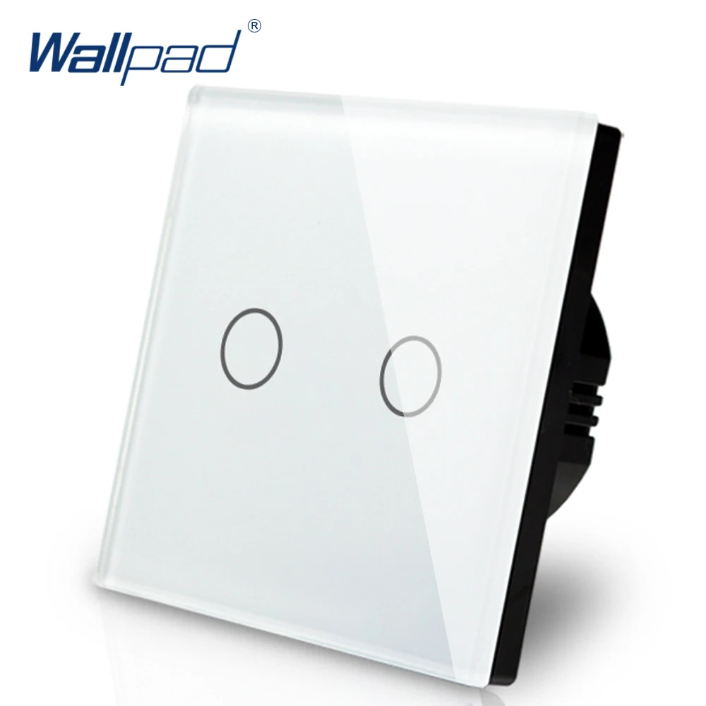 2 клавиши, 2 канала, промежуточный выключатель Wallpad, роскошный настенный выключатель из белого хрустального стекла, сенсорный выключатель, обычный, 110-250 В, европейский стандарт