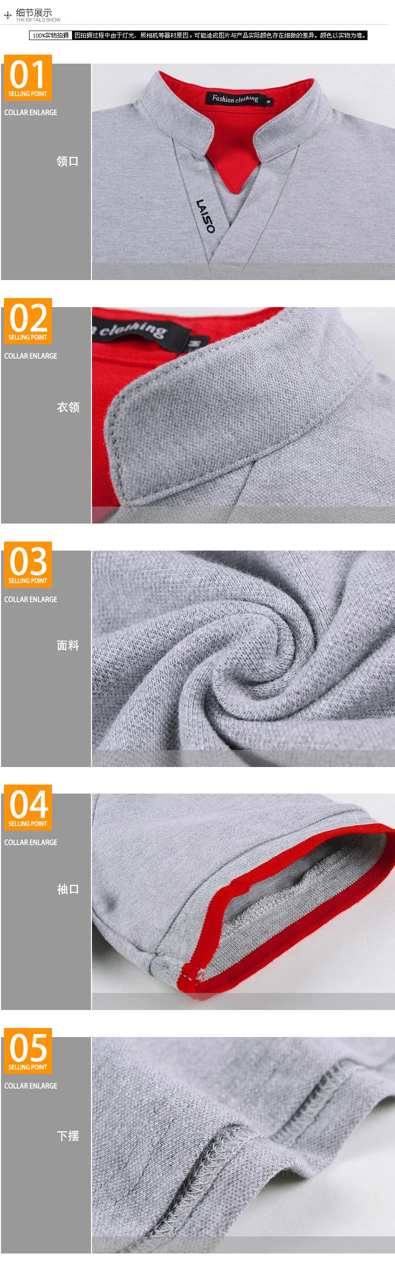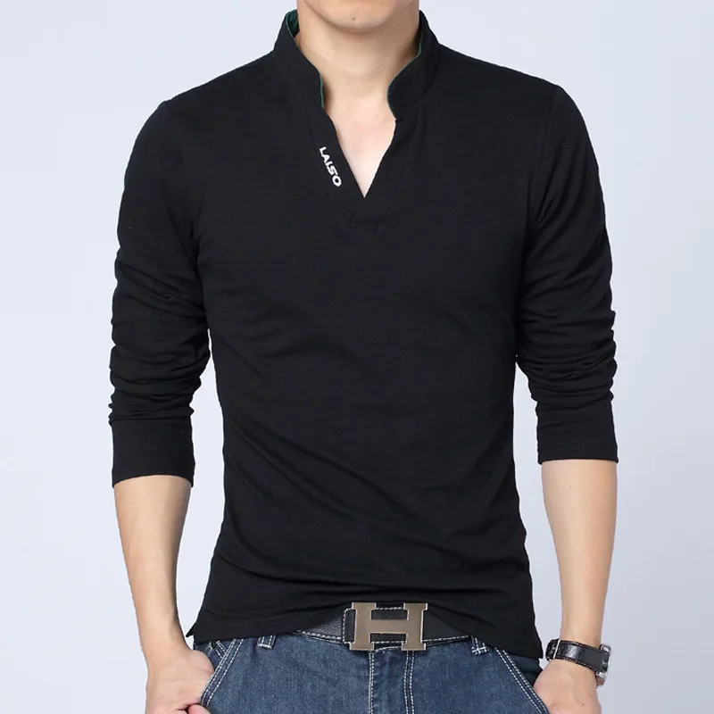 Мужская хлопковая рубашка поло с воротником-стойкой, Однотонная рубашка-поло с длинным рукавом и v-образным вырезом, большие размеры, для отдыха, 2019