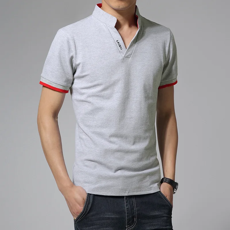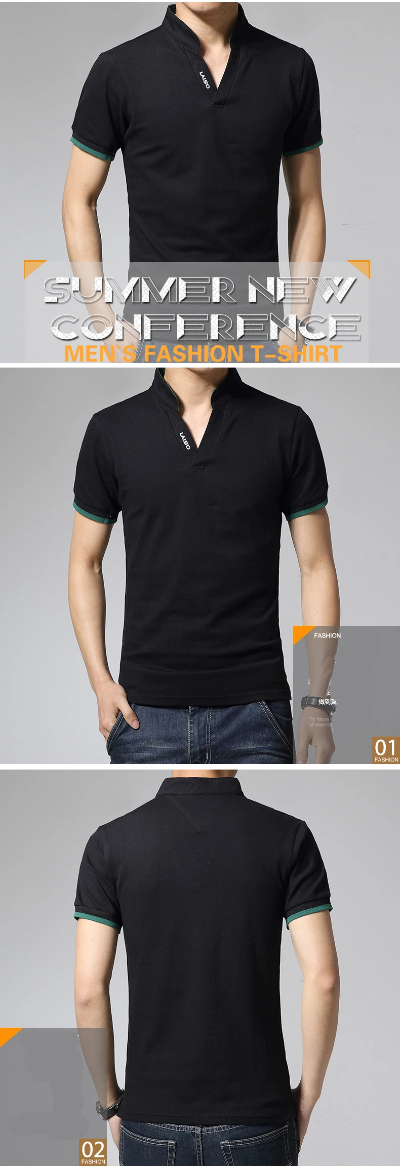 Футболка-поло мужская приталенная с V-образным вырезом, модная Повс...