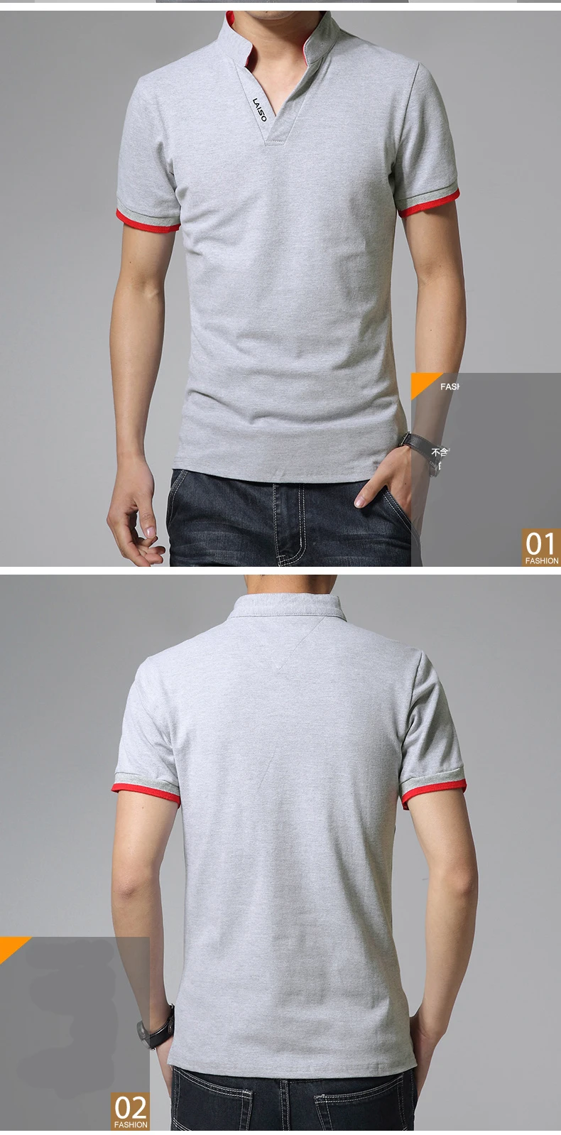 Футболка мужская с воротником-стойкой, модная тенниска из хлопка, б...