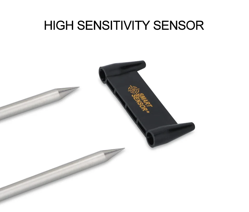 9. Одно измерение:Когда датчик измерителя вставляется в измеряемый предмет, и содержание влаги находится в диапазоне измерений,ЖК-дисплей показывает показания влаги в течение нескольких секунд, и Голосовое управление немедленно сообщит об этом.
