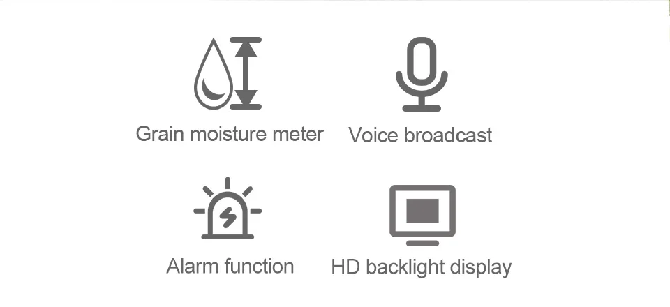 2. Передача голоса:Настройка инструмента, тестирование, проверка, все accopmpanies голосовым напоминанием. Язык: Английский голосовой контроль включает следующее4 режима: d1 = показания moiseture,/d2 = высокое содержание влаги/d3 = голосовое выключение, /d4 = бип-звук