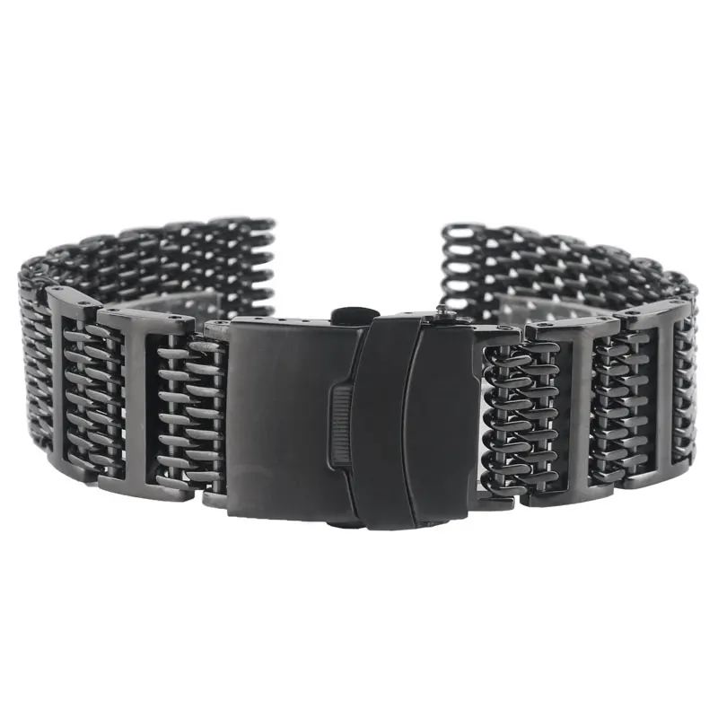 HQ 20 мм 22 мм 24 мм мужской ремешок для часов из нержавеющей стали Акула сетчатый ремешок на запястье роскошный браслет сменная черная кнопка