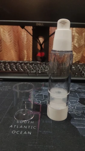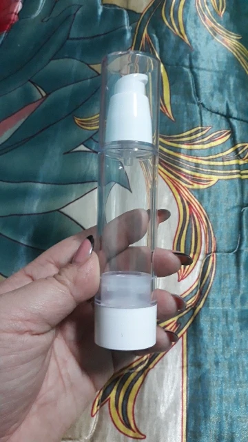 50 мл вакуумная бутылочка для густых жидкостей(крем, гель), не распыляет воду, а выстреливает струёй. Работает на чистой разнице давлений внутри/помещения(через 2 дырочки внизу). Отлично справляется, без предреканий, вплоть до последней капли. Многоразового использования, комфортно адаптирован к "перезарядке".