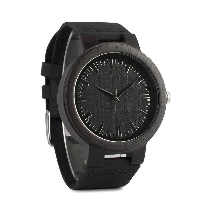 Бобо птица CbC27 черный масштаб деревянные часы старинные часы с кожаным ремешком повседневные кварцевые часы для мужчин в бумага подарочная коробка