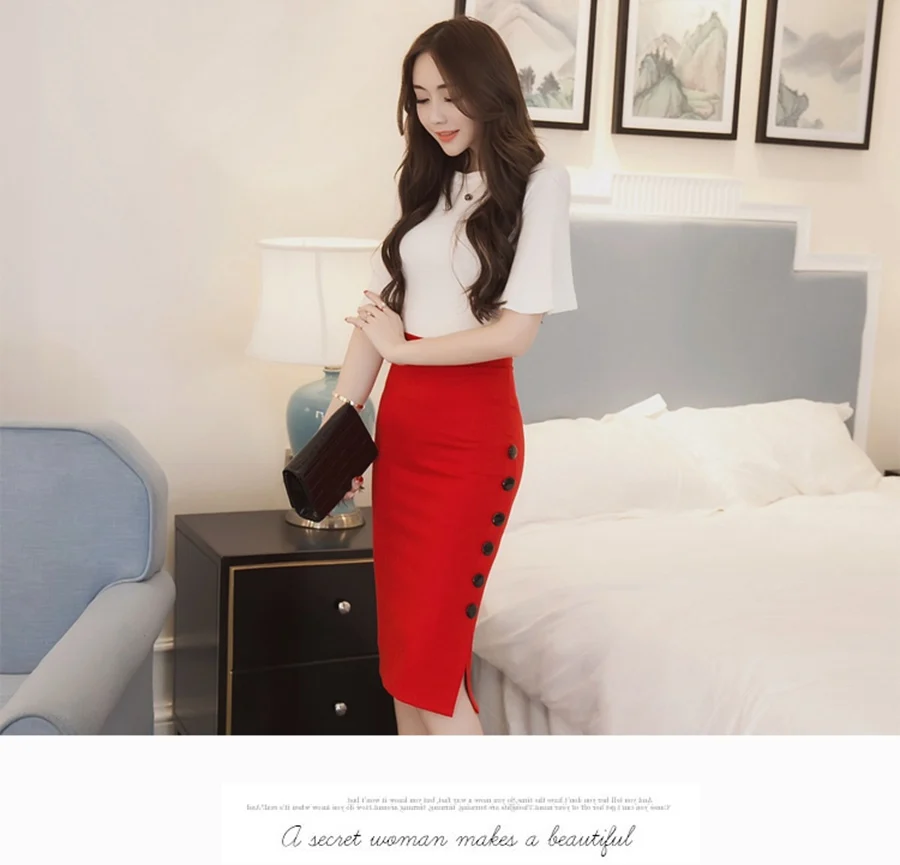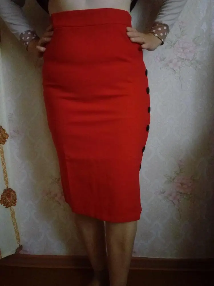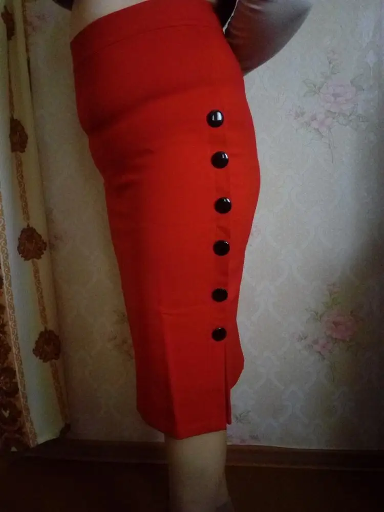 Женская офисная юбка миди, красная, черная облегающая юбка с разрезом на пуговицах, размера плюс, 2021