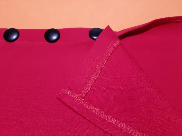 Юбка шикарная. Расстроило только то, что при перевозке её, наверное, прижали чем-то тяжёлым, и на ткани отпечатались пуговицы и молния. Теперь посередине белесая полоса. Посмотрю, что будет после стирки.