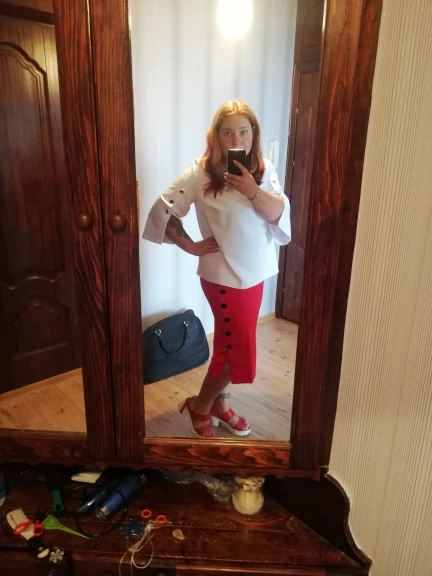 Юбка отличная! Качество материала супер: достаточно плотный + лайкра. Хорошо утягивает. Мб попозже фото выложу (сейчас фоткать некому))). Закажу себе теперь в красном цвете, для разнообразия. Может кому-то поможет при выборе размера. Мои параметры: талия 96, бедра 108, рост 165. 4XL села идеально. Нигде не давит, ничего не пережимает, двигаться и сидеть удобно. Длина как на фото. Единственный момент - лично мне не хватает крючка или пуговицы на поясе, т.к. в составе материала лайкра и застегивать полностью ракрытую молнию сзади без посторонней помощи довольно непросто. Добавлю себе для удобства незаметную застежку-крючочек, как те что на бюстгалтерах))