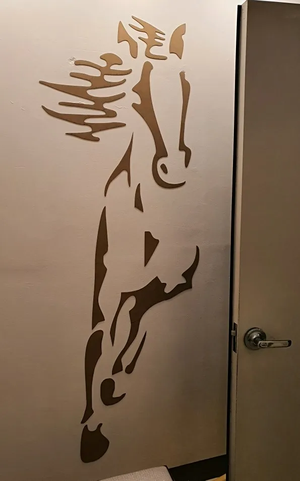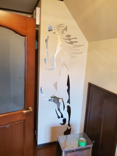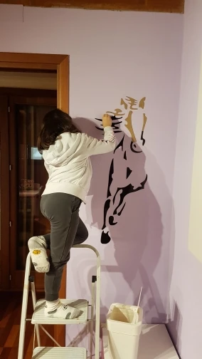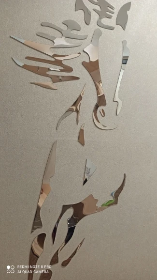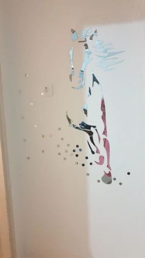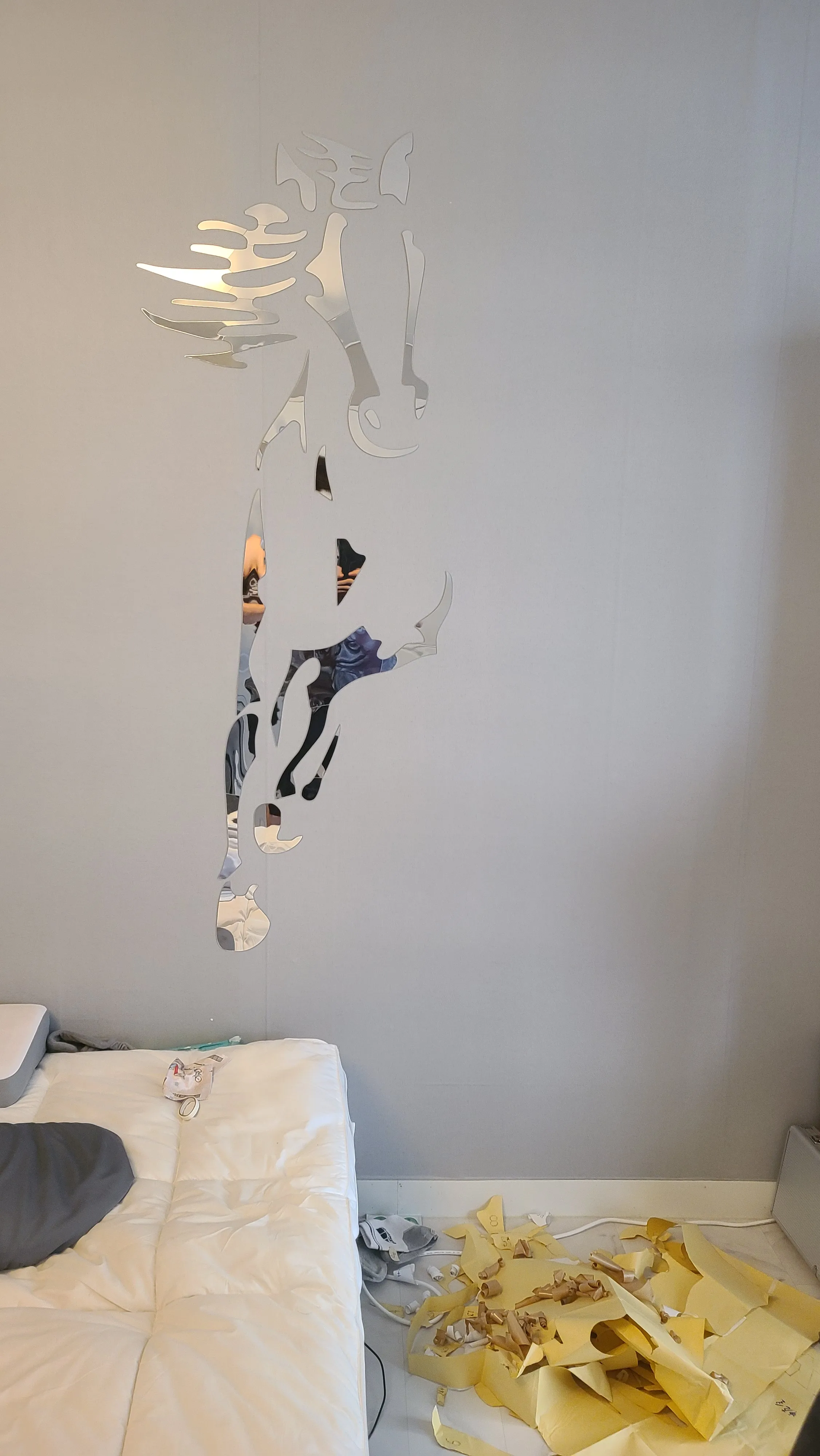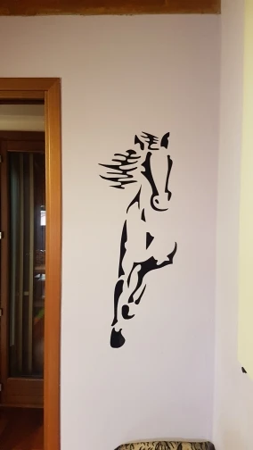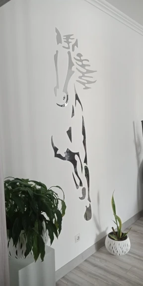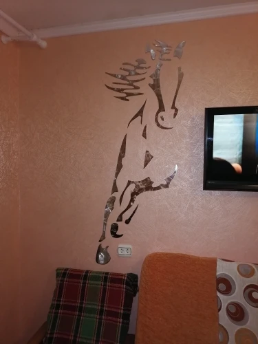 Наклейки на стену действительно красивые. Легко Применяется, если у вас есть терпение. В коробке мы находим лист бумаги (Дима) с дизайном нашей лошади, она относится к стене, а затем типа паззл, но умный пометил, что он соответствует нумерации каждого предмета, и вы сделали...