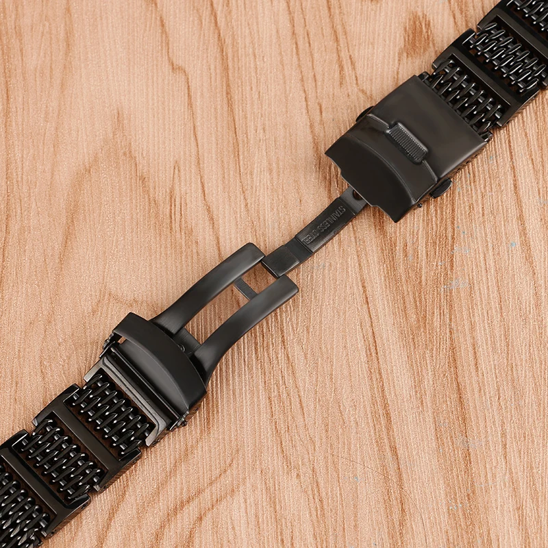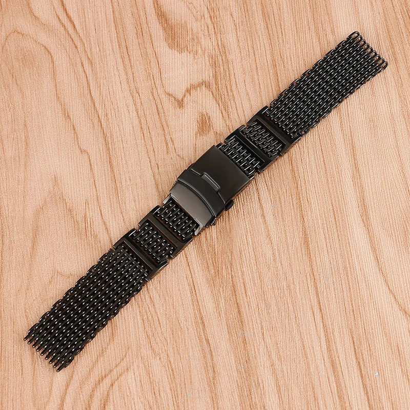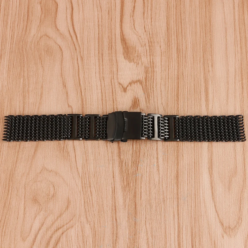 Ремешок для часов HQ из нержавеющей стали, прочный сменный Браслет с сеткой в виде черной акулы для мужчин и женщин, с 2 пружинными стержнями, 20 мм 22 мм 24 мм