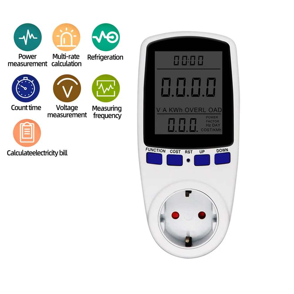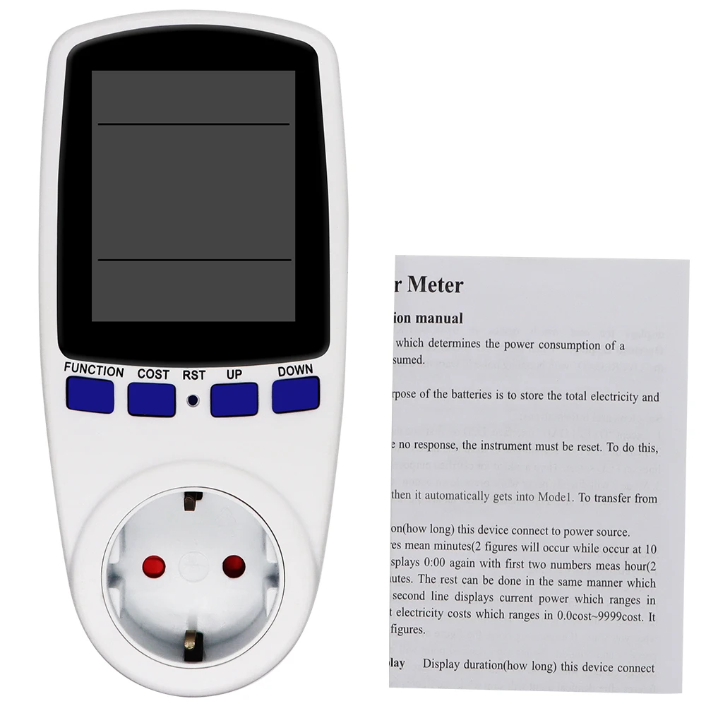 Измеритель мощности с европейской вилкой, ваттметр, ваттметр с монитором 230 В, 50 Гц, 16 А, цифровой измерительный выход, ваттметр мощности, анализатор кВтч, измеритель энергии