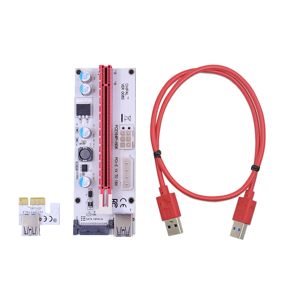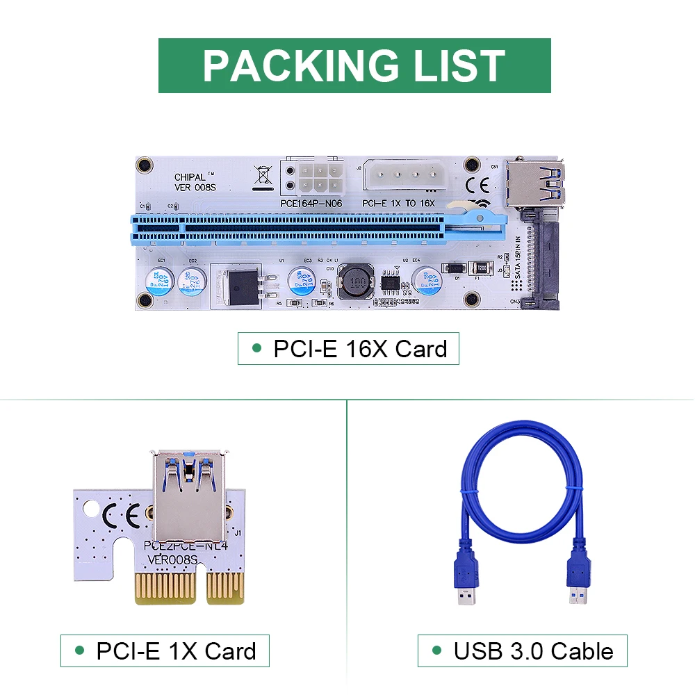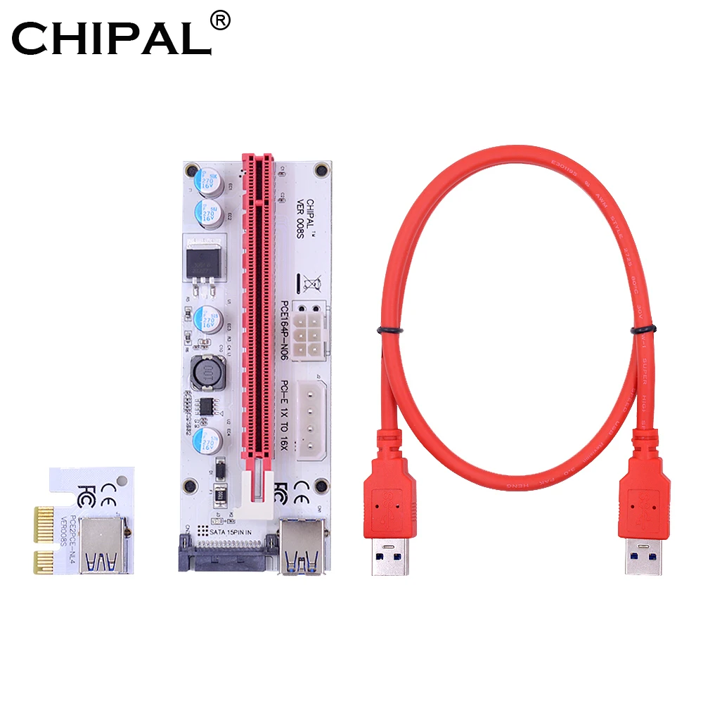 CHIPAL VER008S PCI-E Riser Card PCI Express PCIE 1x to 16x удлинитель адаптера 0,6 м Кабель USB 3,0 15Pin SATA 4Pin 6Pin шнур питания