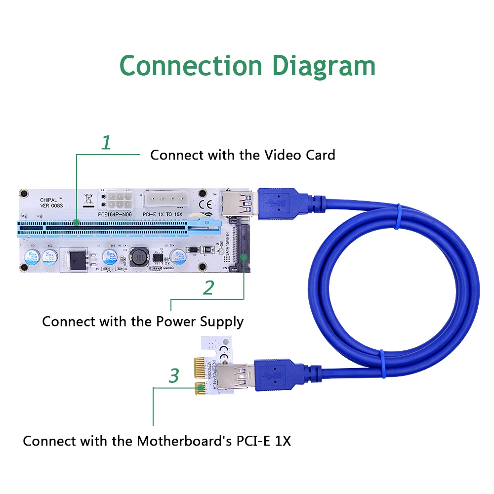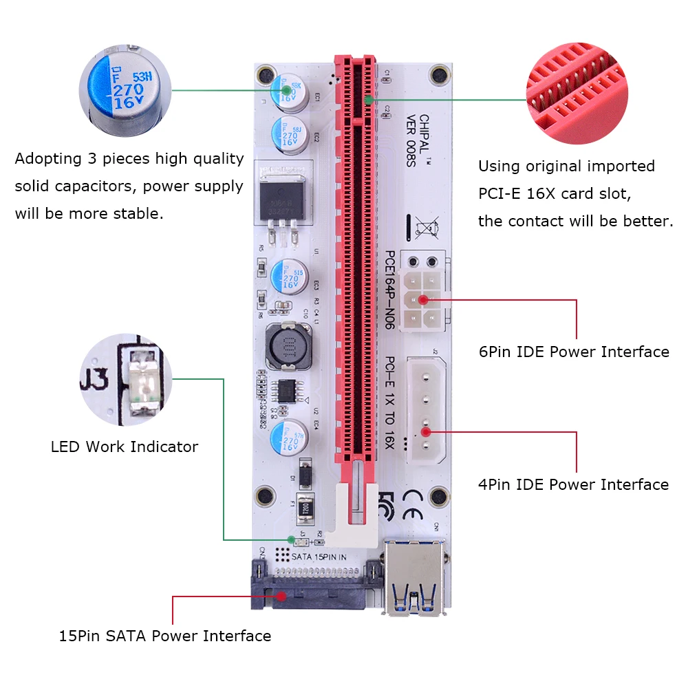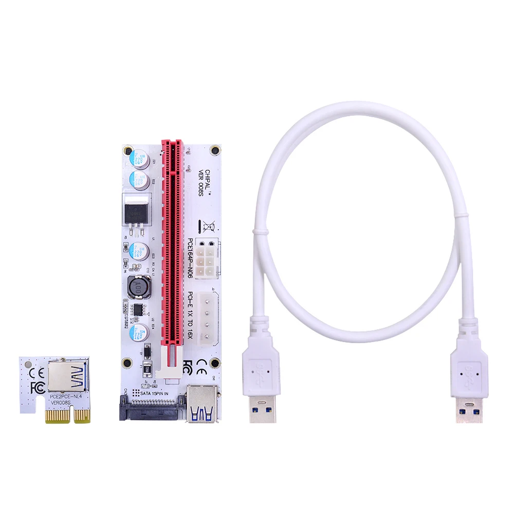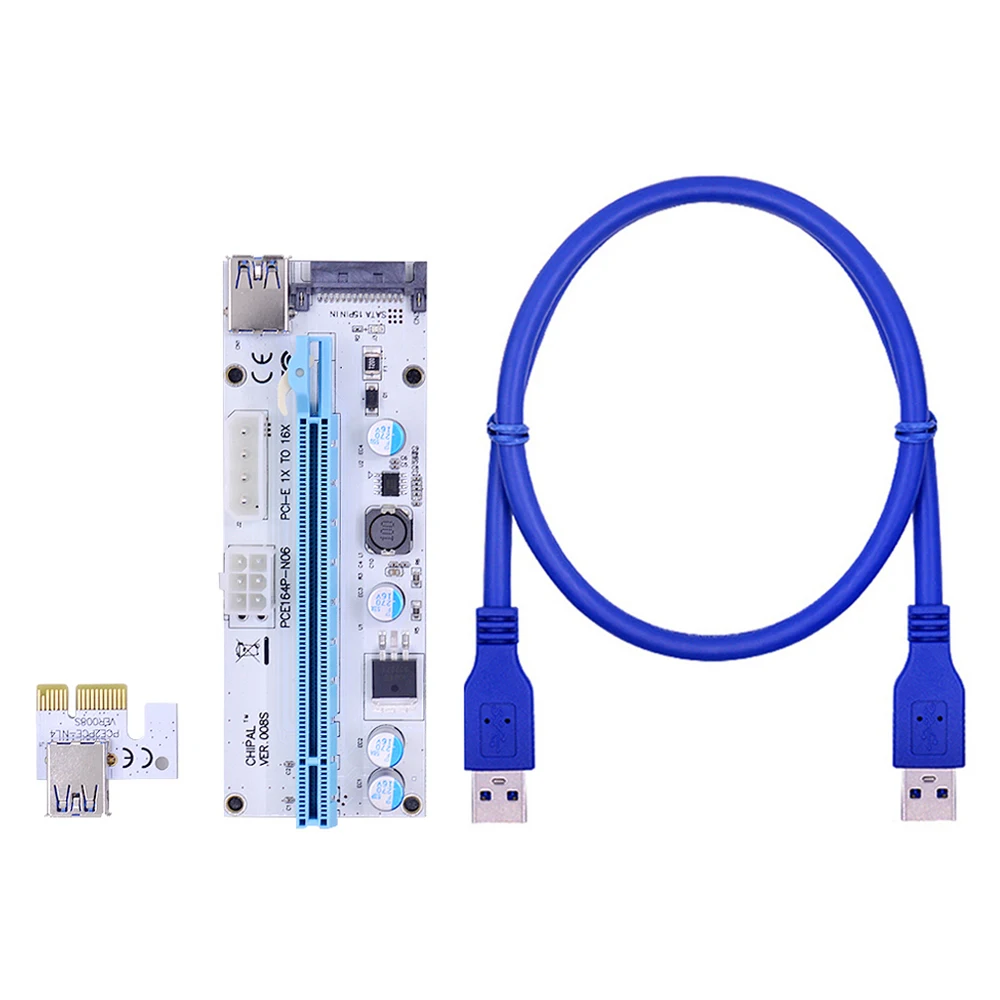 CHIPAL VER008S PCI-E Riser Card PCI Express PCIE 1x to 16x удлинитель адаптера 0,6 м Кабель USB 3,0 15Pin SATA 4Pin 6Pin шнур питания