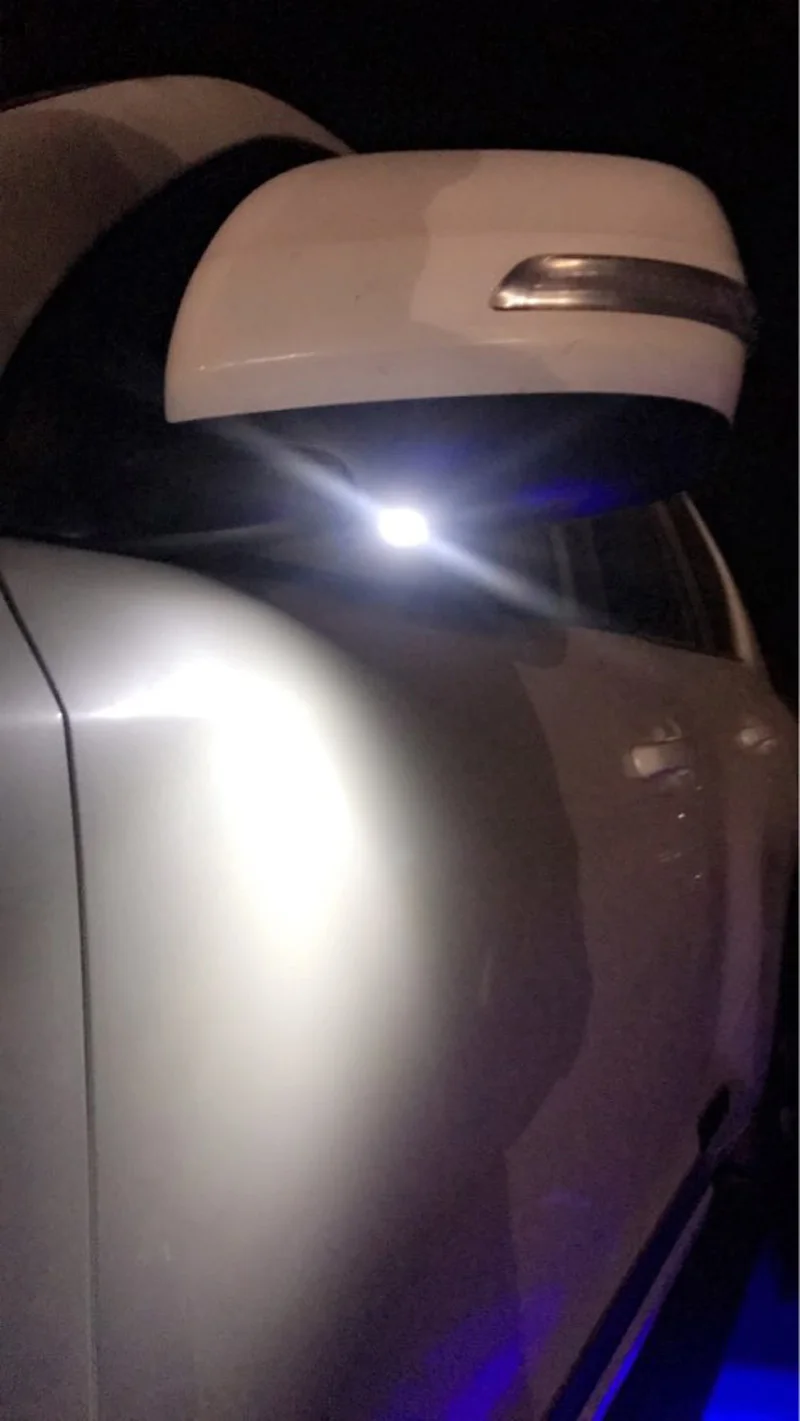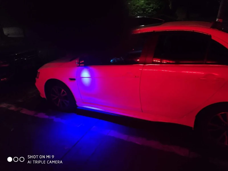 Этот мини-светильник также можно установить наЗеркало заднего видаКак вниз светильник, можно установить наАвтомобильная дверьКак Добро пожаловать ночной Светильник шаг светильник см установка эффекты ниже: