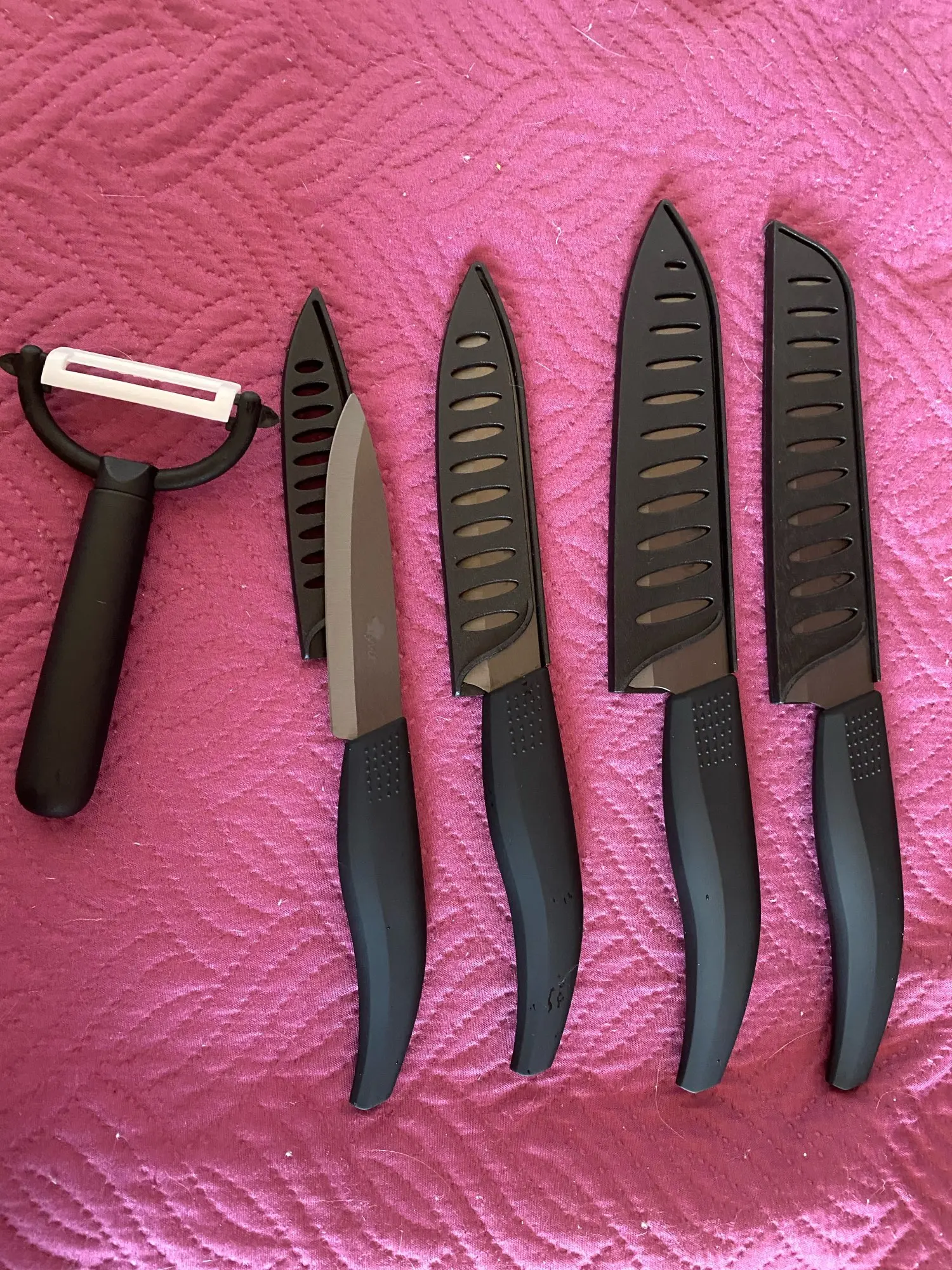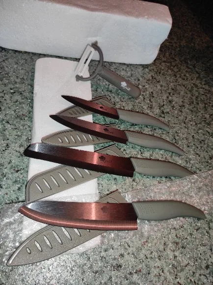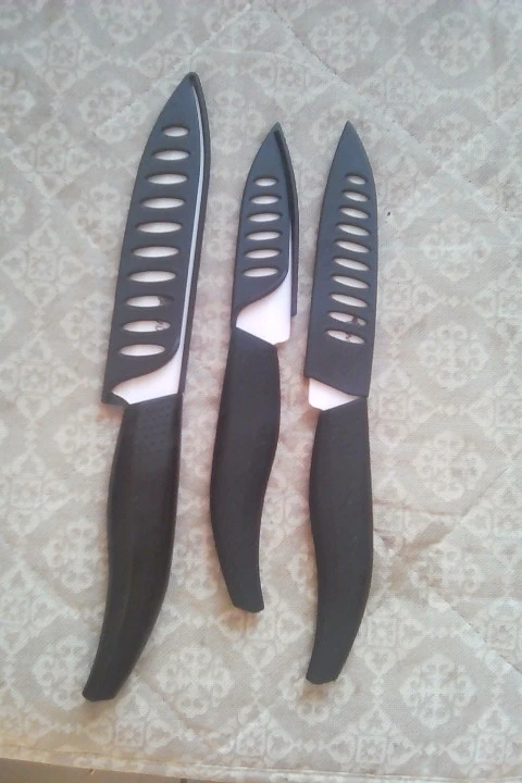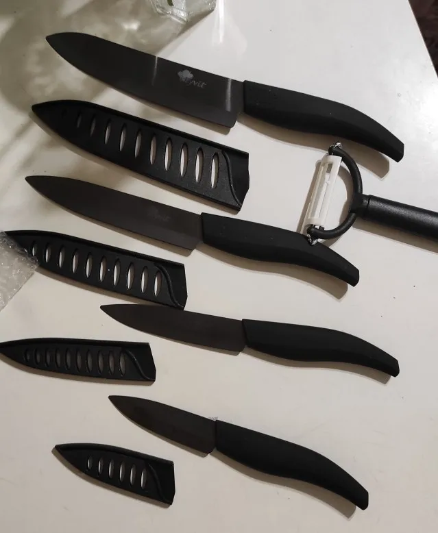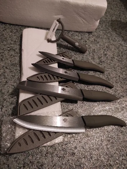 Заказываю эти ножи третий раз и второй раз для друзей в целом ножи хорошие за такую цену, но довольно нежные и лезвие быстро разрушается если пользоваться не аккуратно. В с воем распоряжении имею 1 керамический нож покупал на месте, которым пользуюсь 4 год, но он намного лучше по качеству, соответственно и стоит дороже. Ножами с алиэкспресс пользуюсь пол года, и очень аккуратно, но заметны микроразрушения на лезвии 2-х из 4-рех ножей (кости и твердые предметы не резал, а так же не ронял и не ложил вместе с металлическими предметами). Продавца рекомендую, ну а ножи сами смотрите если вым важна цена и пользоваться будете аккуратно то рекомендую, + рекомендую взять сразу комплект из 4-рех ножей что бы выполнять различные задачи разными ножами, так они прослужат дольше.