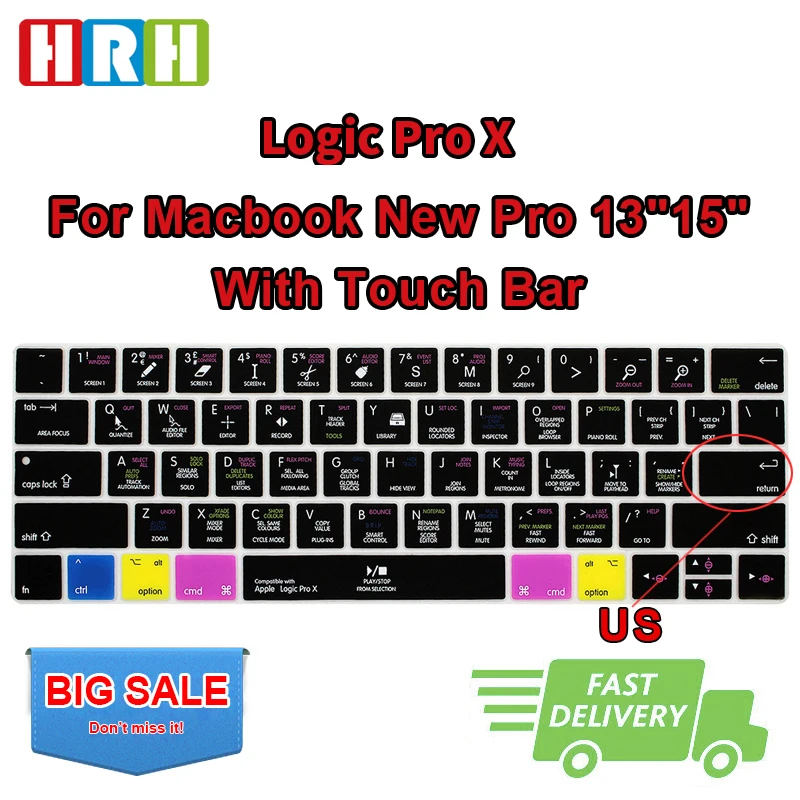 Силиконовые чехлы для клавиатуры HRH Logic Pro X, чехлы для Macbook Pro 13 дюймов, A1706, 15 дюймов, A1707, A2159, сенсорная панель с разъемом 20172018