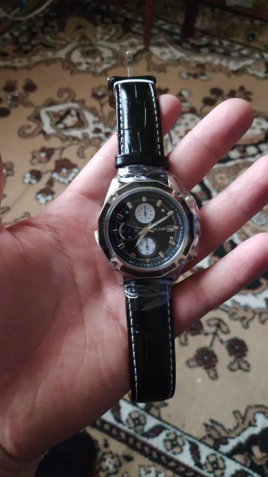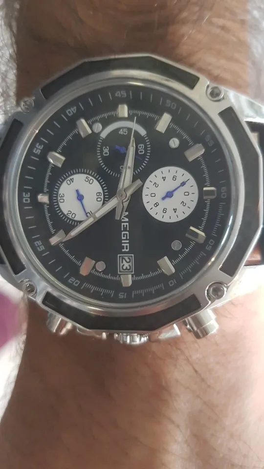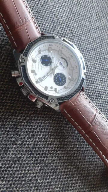 Часы красивые, крупные, но большими не кажутся. Все циферблаты работают. Ремешок думаю не надолго. Заказал 18 января пришли 20 января для курьерской доставки. Ждал ещё 5дней(всего неделя). Заказ из России. Моя оценка 5+.