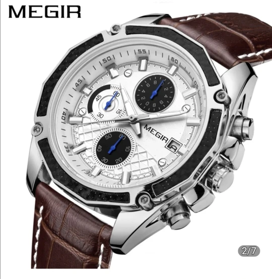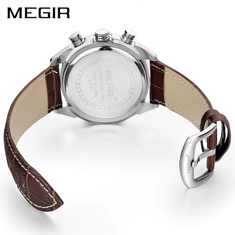 Megir официальный часы кварцевые мужские модные натуральная кожа хронограф часы для легкой Мужчины Мужской студенты Reloj Hombre