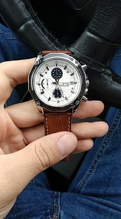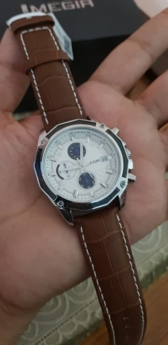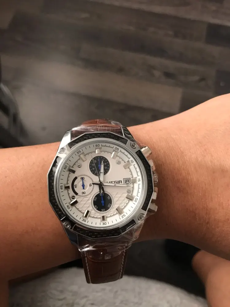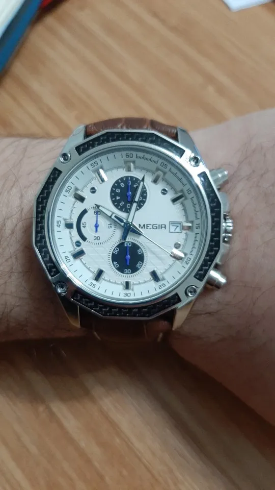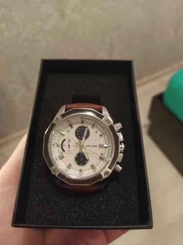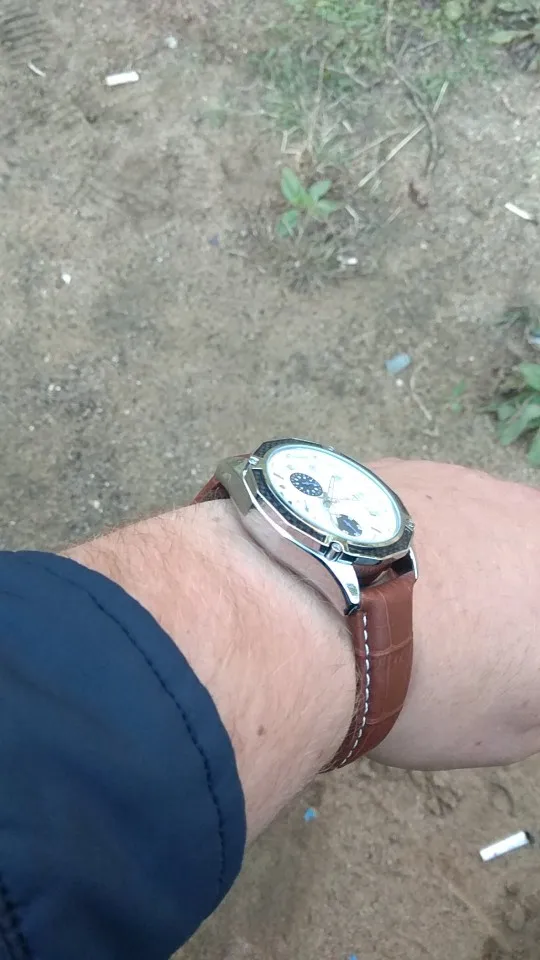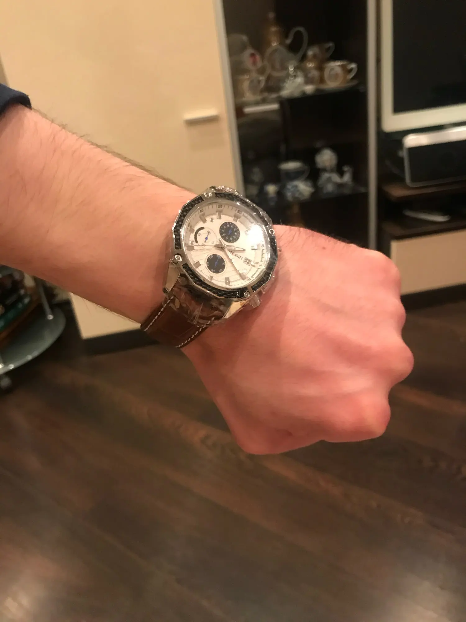 Часы красивые, выглядят достаточно неплохо. Но есть минусы. Во-первых, белые стрелки на белом циферблате плохо различимы. Во- вторых, ремешок. Очень жёсткий и явно не кожа. Насчёт надёжности часов ничего сказать не могу. Надеюсь всё будет ok.