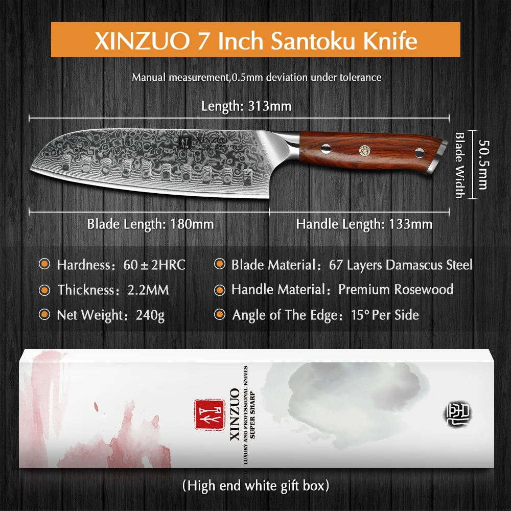 Японский нож шеф-повара XINZUO, 7-дюймовый кухонный нож из китайской дамасской нержавеющей стали, профессиональные ножи сантоку с рукояткой из палисандра