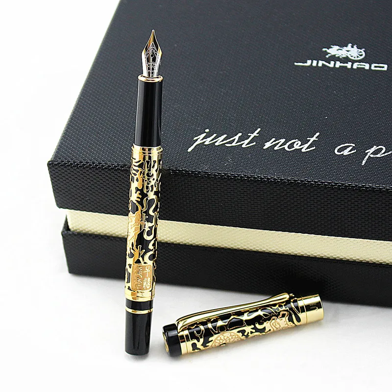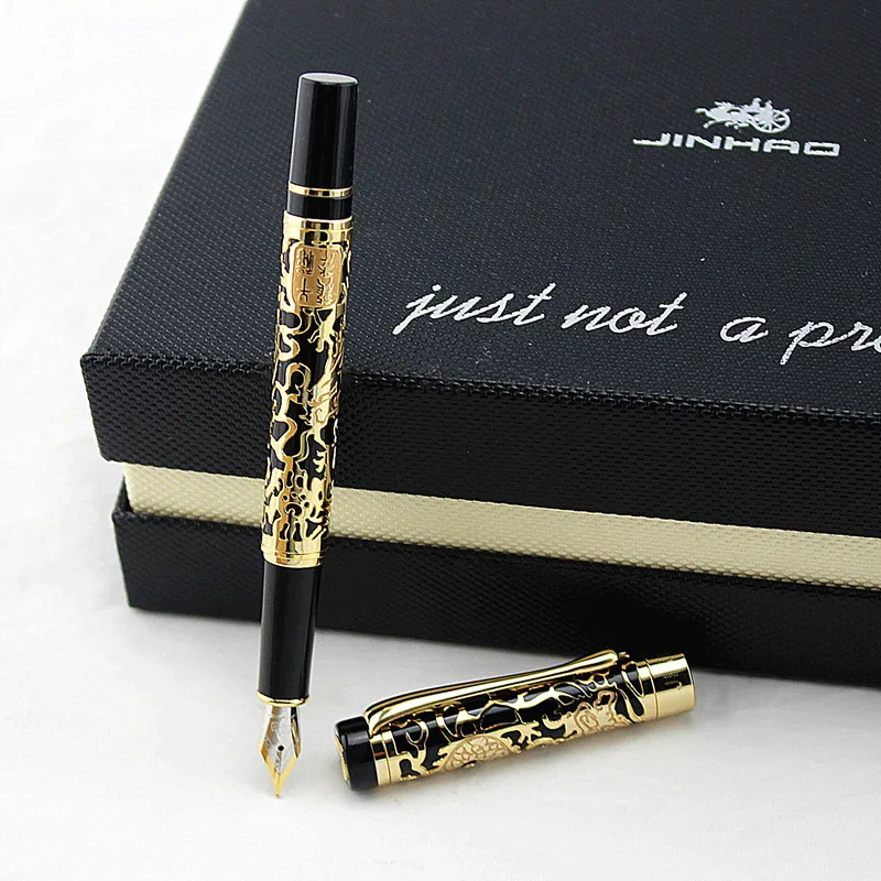 Jinhao Ручка, изысканный Дракон Золотой резной дизайн перьевая ручк...