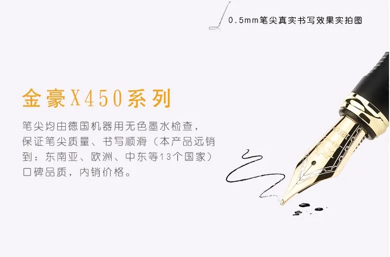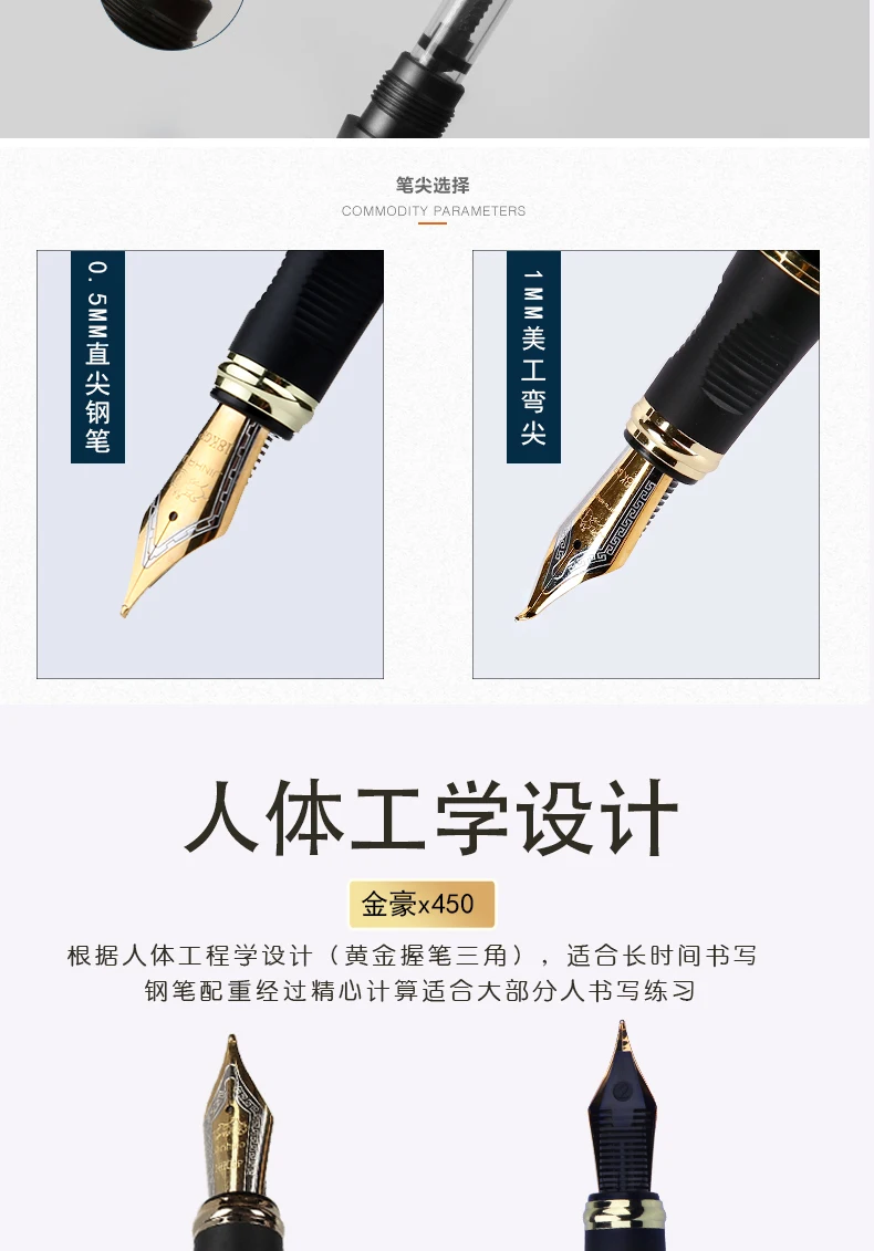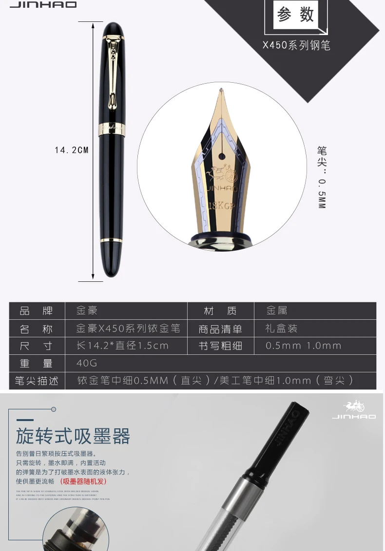 JINHAO X450 матовый черный и золотой 0,7 мм перо с широким основанием перьевая ручка JINHAO 450