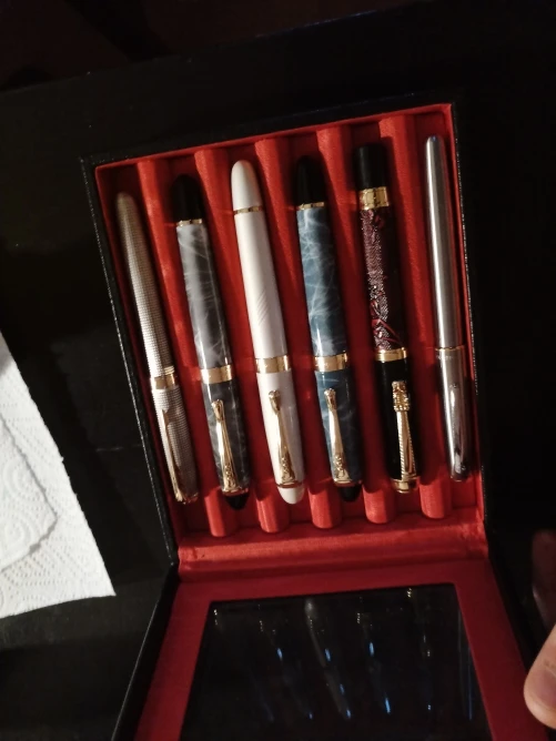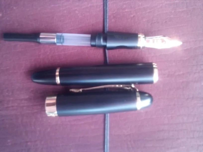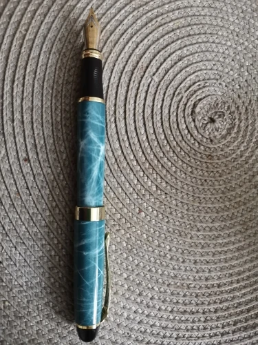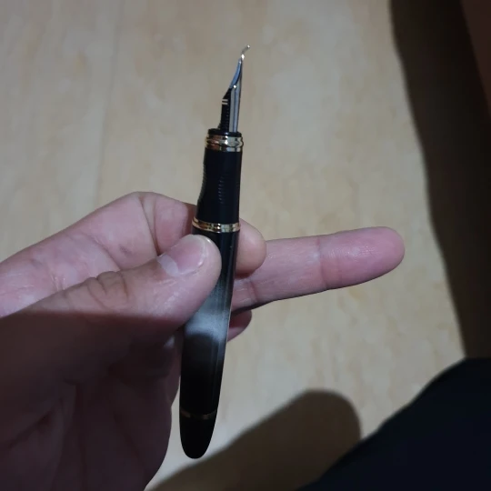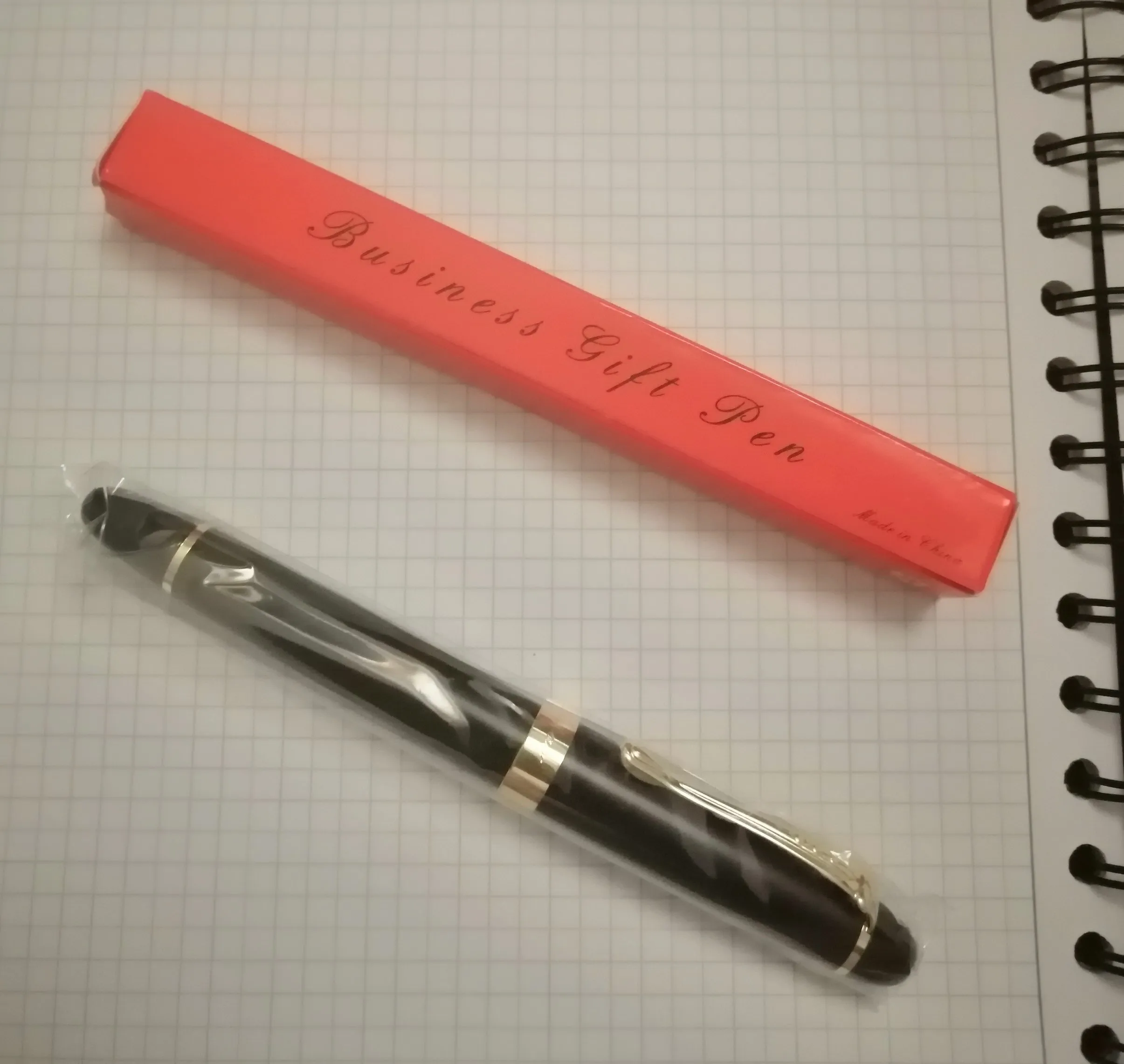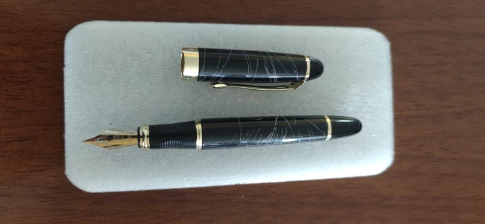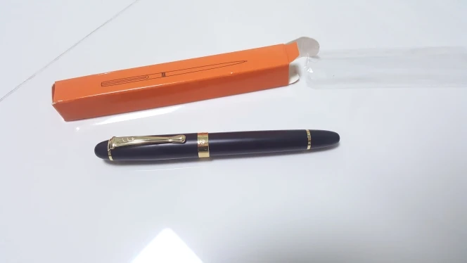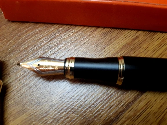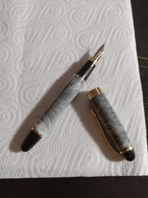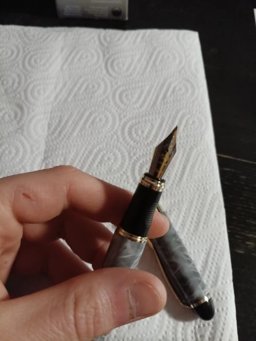 Received In Spain in 20 days. Хорошо защищенная упаковка. Ручка Хорошо закончена. Капюшон плохо вписывается в тело ручки: Он имеет тенденцию падать. Толстая линия. Во время письма возникают перерывы, если перо немного вымыто.