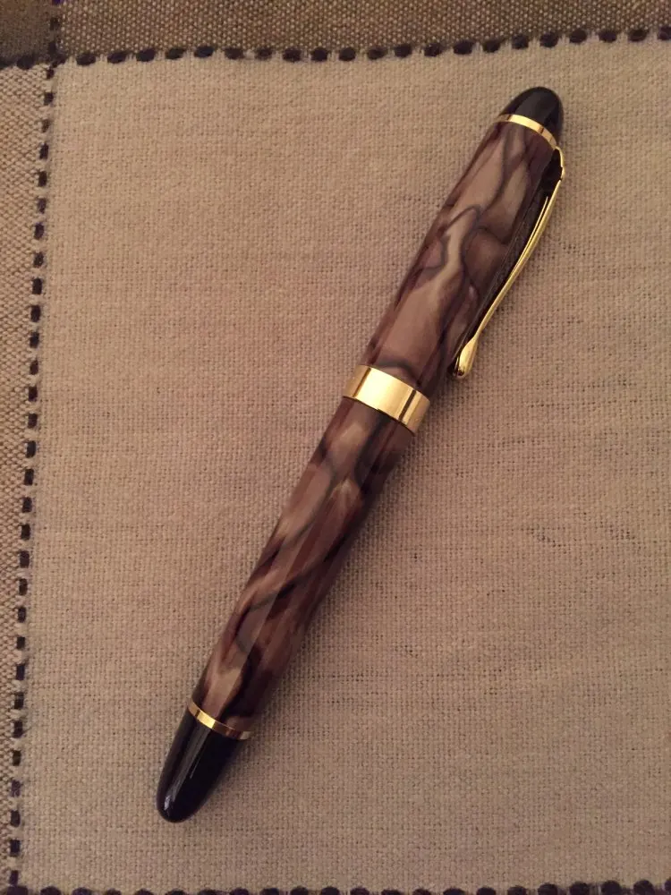 ручка отличная,тяжелая и хорошо пишет,шла долго,хотя отправили быстро,видимо карантин. пришла только 1 ручка,хотя заказаны были 2 с разными перьями. вернули деньги за вторую. буду заказывать еще.