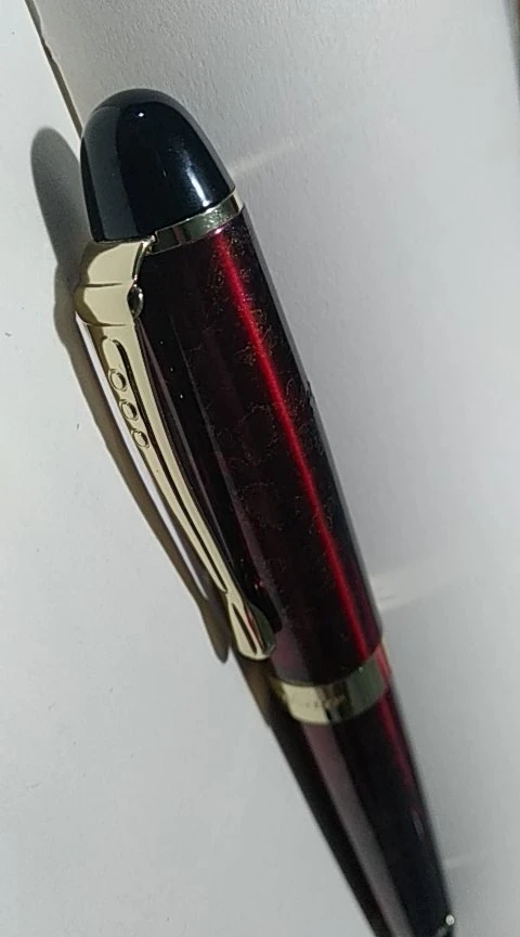 Ручка очень понравилась. Материал корпуса тут не пластик а по ощущениям какая то металокерамика. Ручка довольно тяжелая. Состояние идеальное. Дошло без проблем. Из минусов. Пришла с пером 0.7 вместо заказанного 0.5. Что не обрадовало.