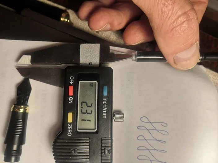 Здесь вы должны быть осторожны и хорошо выглядеть при покупке, моя вина, я ожидал, что эта ручка с прямым пером 1,0 мм, и я получил один с изогнутым типом «выцветает». Теперь это моя поворот, чтобы купить мне свободный наконечник и изменить его, но то, что я купил, то, что предлагает продавец. См. Мои фотографии, и там он четкий на фото 5. С другой стороны, ручка в основном имеет приятный цвет и кажется последовательным. Я настаиваю, вы должны быть осторожны, чтобы не делать сюрпризы, как я. Для правильного резервуара и времени было 13 дней.