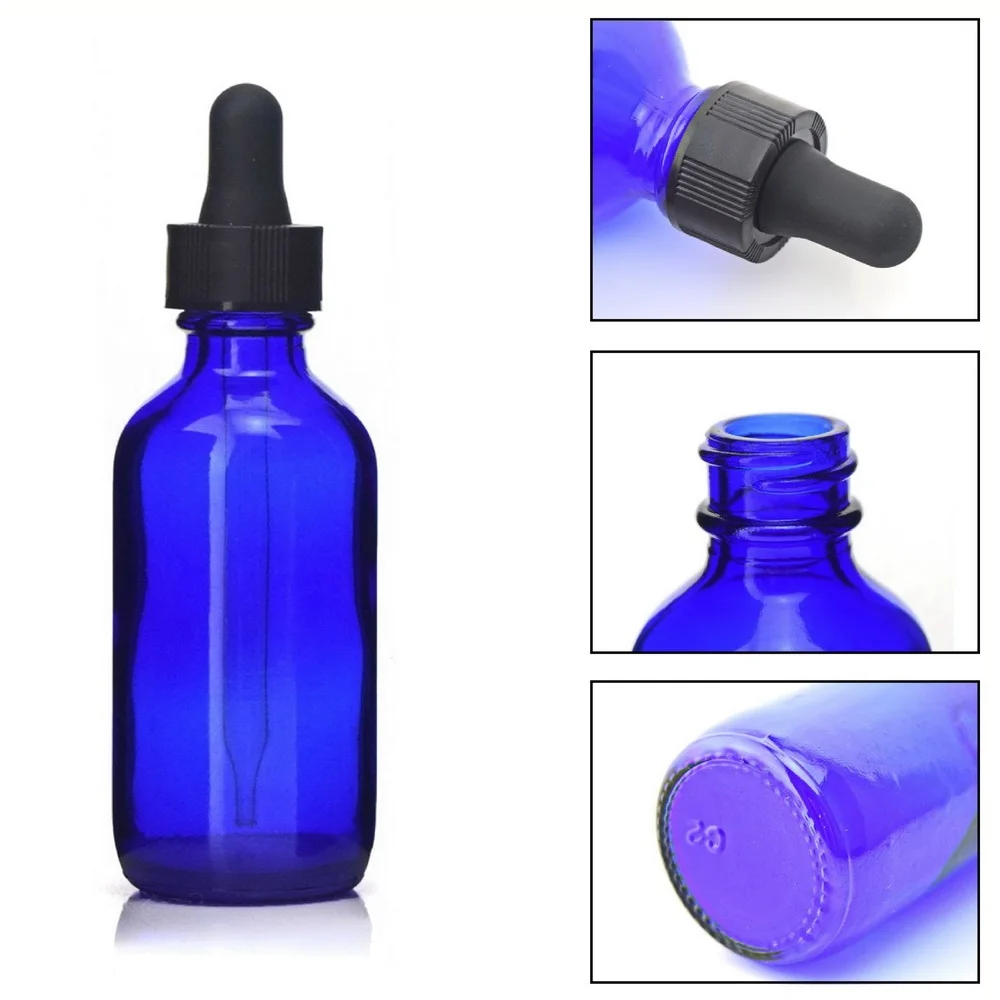 6 шт., 60 мл, 2 унции, пустая кобальтово-голубая стеклянная бутылочка с пипеткой и капельницей для эфирных масел, ароматерапия, лаборатория, химия
