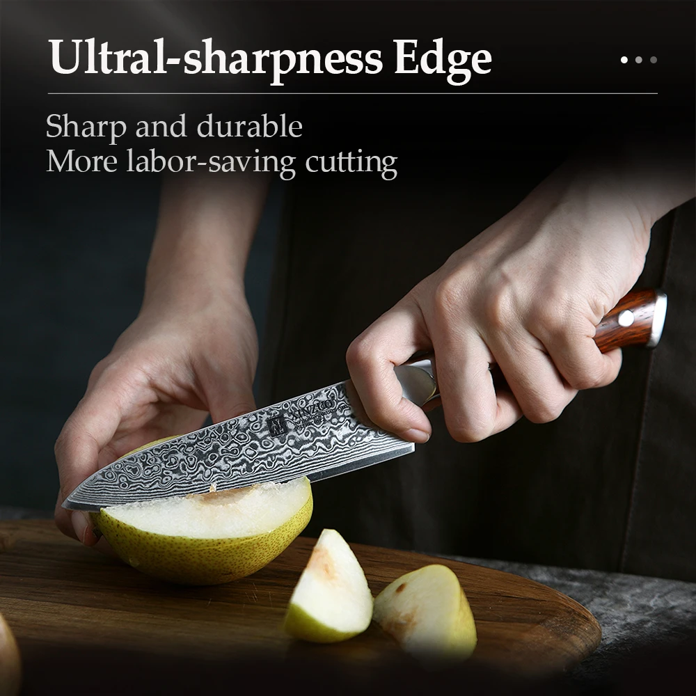 XINZUO 5 дюймов Кухонные ножи японский дамасский стальной кухонный нож палисандр ручка хит продаж маленький нож фруктовые поварские ножи