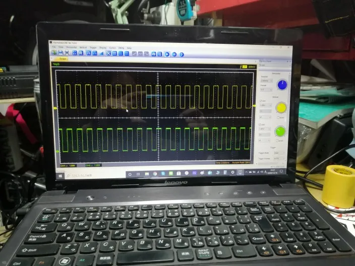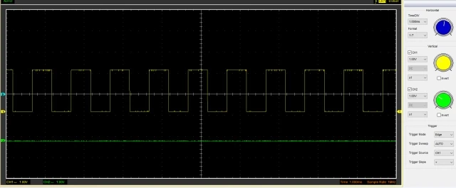 Осцилограф пришёл быстро, всё работает. Драйверы установились без проблем. Единственное только то, что образцовый сигнал в 1кГц далёк от совершенства. хотя он то как раз и должен быть самым чётким. В общем у него есть выброс по переднему фронту в виде пики выше прямоугольного импульса. В минус так же есть но небольшой.
